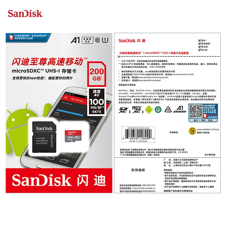 La tarjeta de memoria microSDXC UHS-I móvil de alta velocidad SanDisk es impermeable/resistente a impactos, resistente al frío y resistente a los rayos X. Puedes disfrutar de la aventura sin preocuparte por la durabilidad de la tarjeta de memoria.