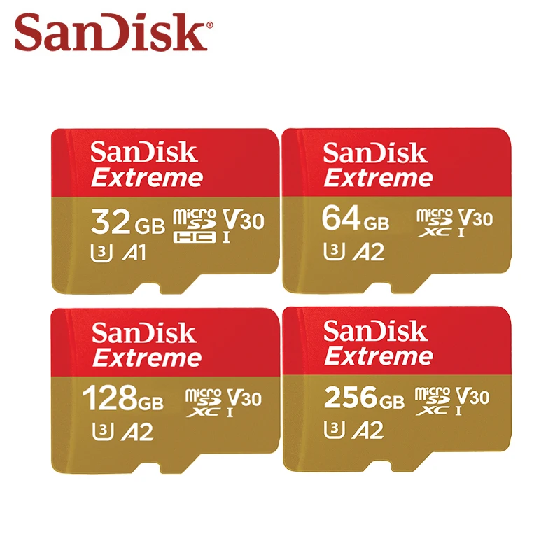 SanDisk Extreme Tarjeta Micro SD 256GB 128GB 64GB A2 Tarjeta de Memoria 32GB A1 U3 V30 Tarjeta TF Original para Cámara Drone Tarjeta Flash