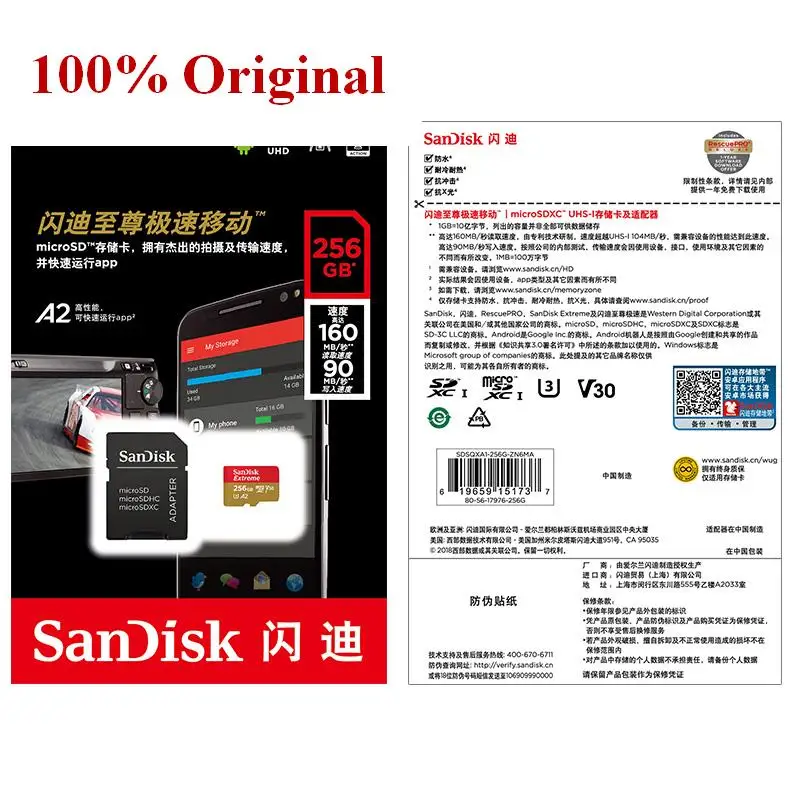 Comprar SanDisk-tarjeta Micro SD Extreme U3 A2, tarjeta de memoria TF para cámara Drone, 32GB, 64GB, 128GB, 256GB, 1TB, envío