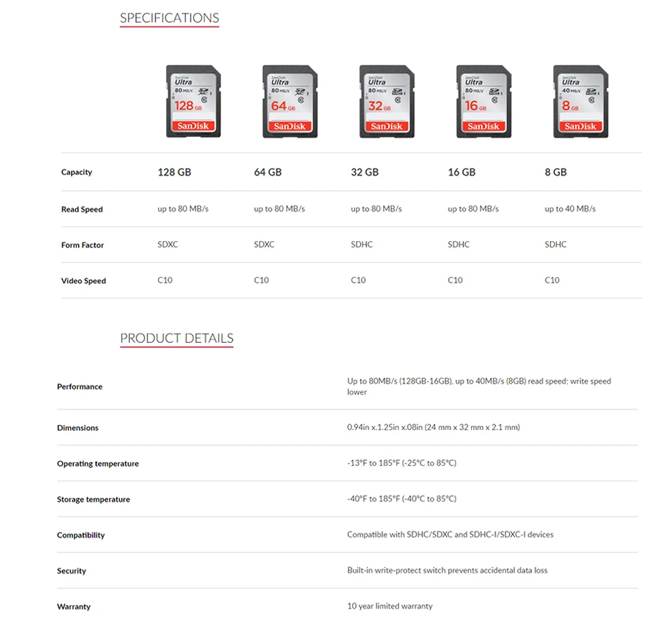2. Todos los productos están en línea con el sitio web oficial de Sandisk.