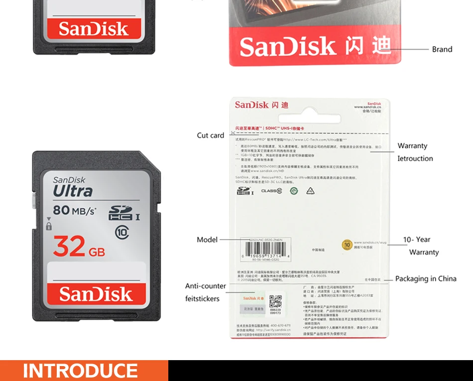 Comprar SanDisk-tarjeta SD de 128GB, 64GB, 32GB, 16GB, tarjeta de memoria microSDHC SDXC UHS-I, micro tarjeta TF de 256gb, 120 MB/s Class10 U3 para cámara SDUNC