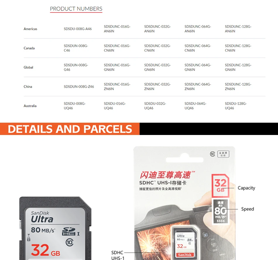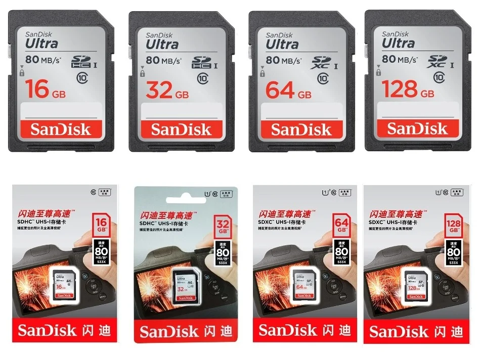 Comprar SanDisk-tarjeta SD de 128GB, 64GB, 32GB, 16gb, tarjeta de memoria microSDHC SDXC UHS-I, tarjeta micro SD TFsd 80 MB/s Class10 U3 para cámara SDUNC