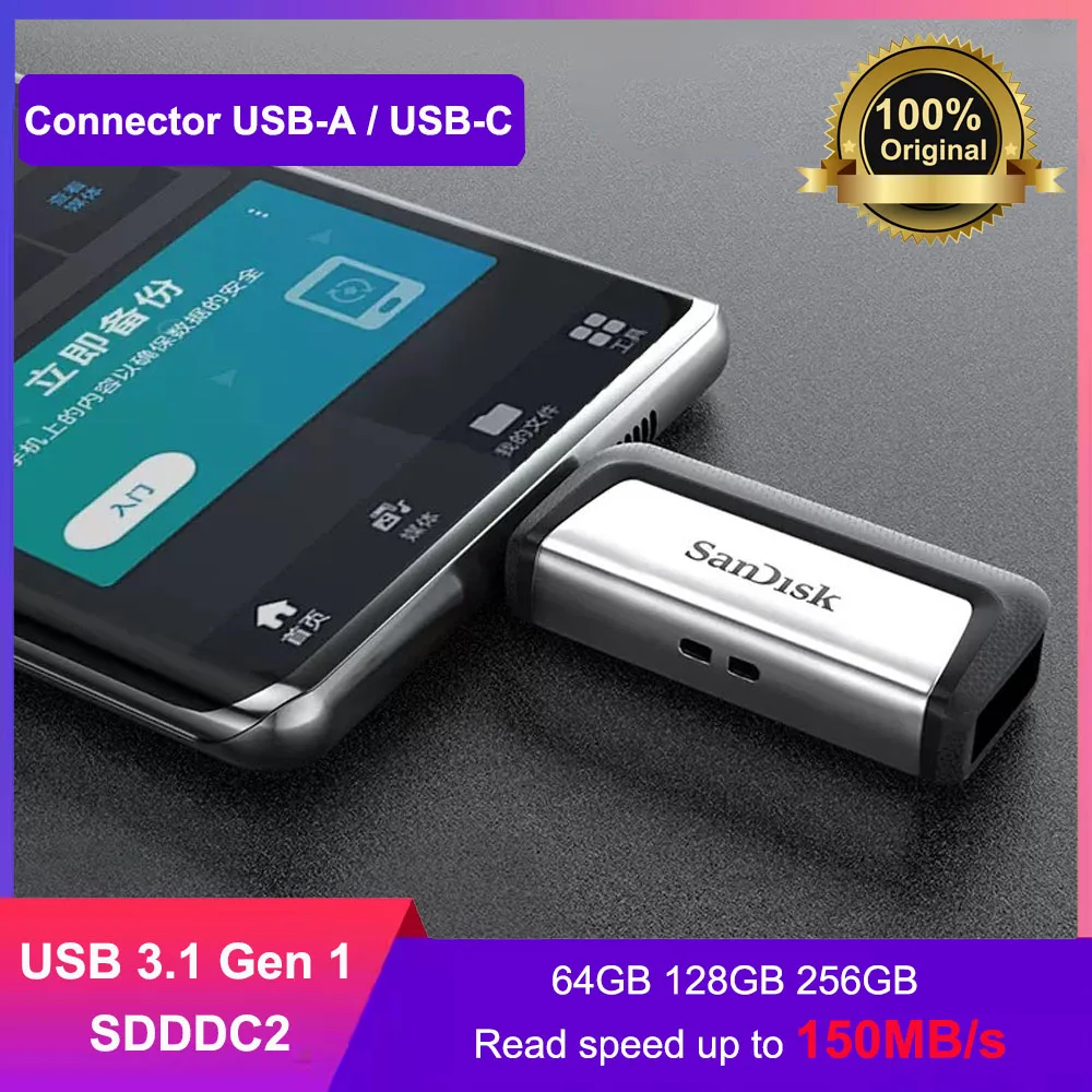 Comprar SanDisk Ultra Dual Drive USB tipo c 64GB SDDDC2 128GB OTG USB3.1 unidad Flash 256GB hasta 150 MB/s Pen Drive disco U para computadora