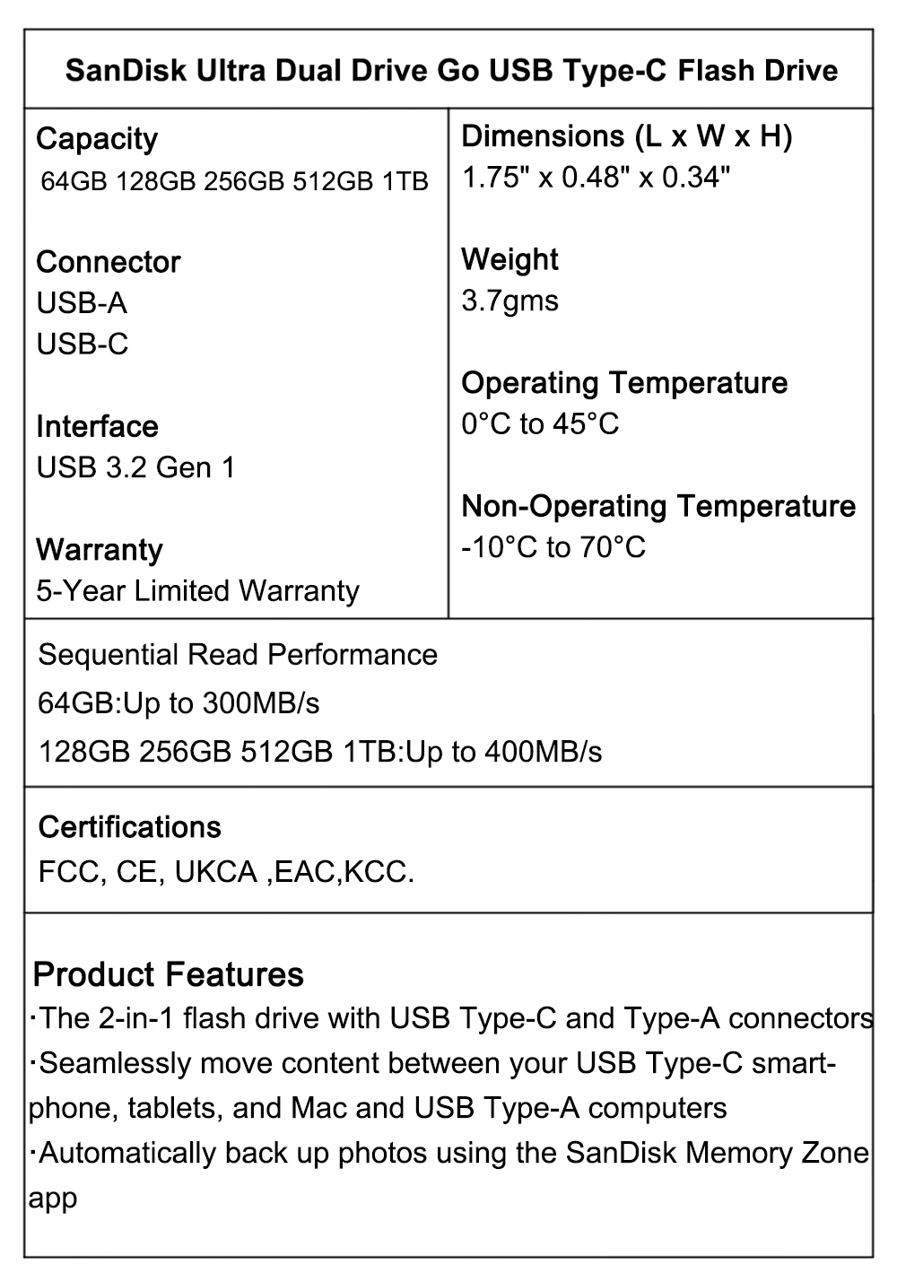 1. Unidad flash USB SanDisk Ultra Dual Drive Go y mueve fácilmente los archivos de su dispositivo, liberando espacio valioso.Con todo ese espacio adicional podrás hacer más fotos de viajes, películas, música, juegos y cualquier otra cosa que desees.