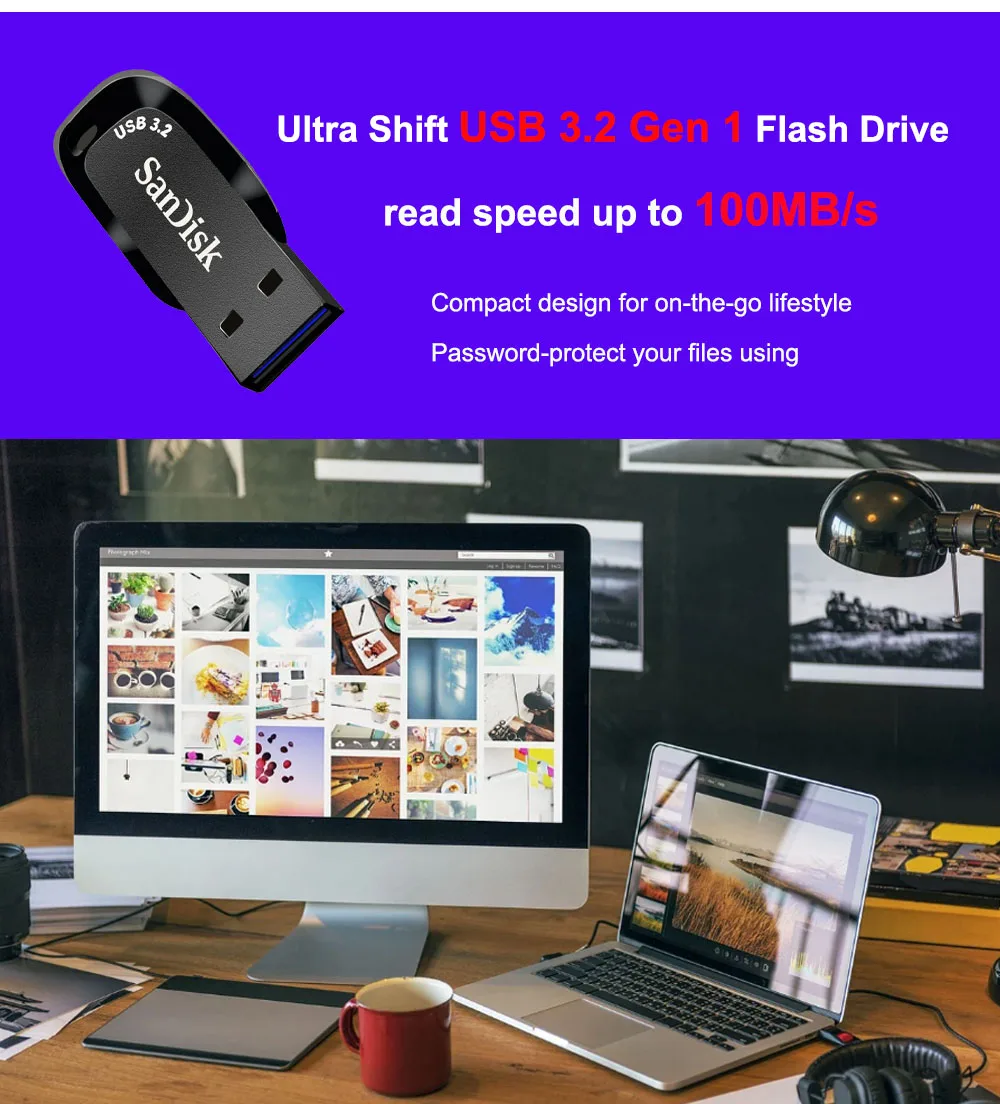 Comprar SanDisk Ultra Shift USB 3,2 unidad Flash 32GB 64GB Mini Pen drive 128GB 256GB 512GB velocidad de lectura hasta 100MB/s memoria de disco U