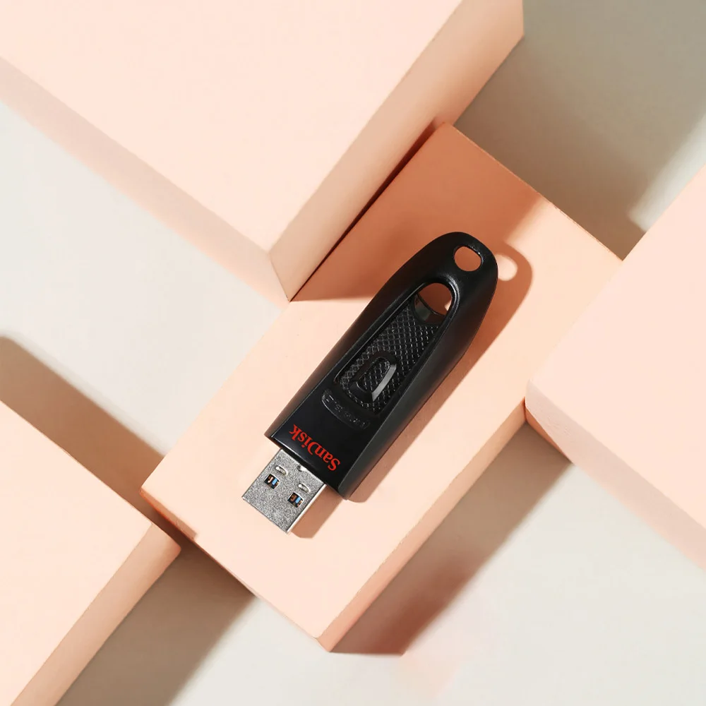 La unidad flash SanDisk Ultra USB 3.0 combina velocidades de datos más rápidas y una capacidad generosa en un paquete compacto y elegante.