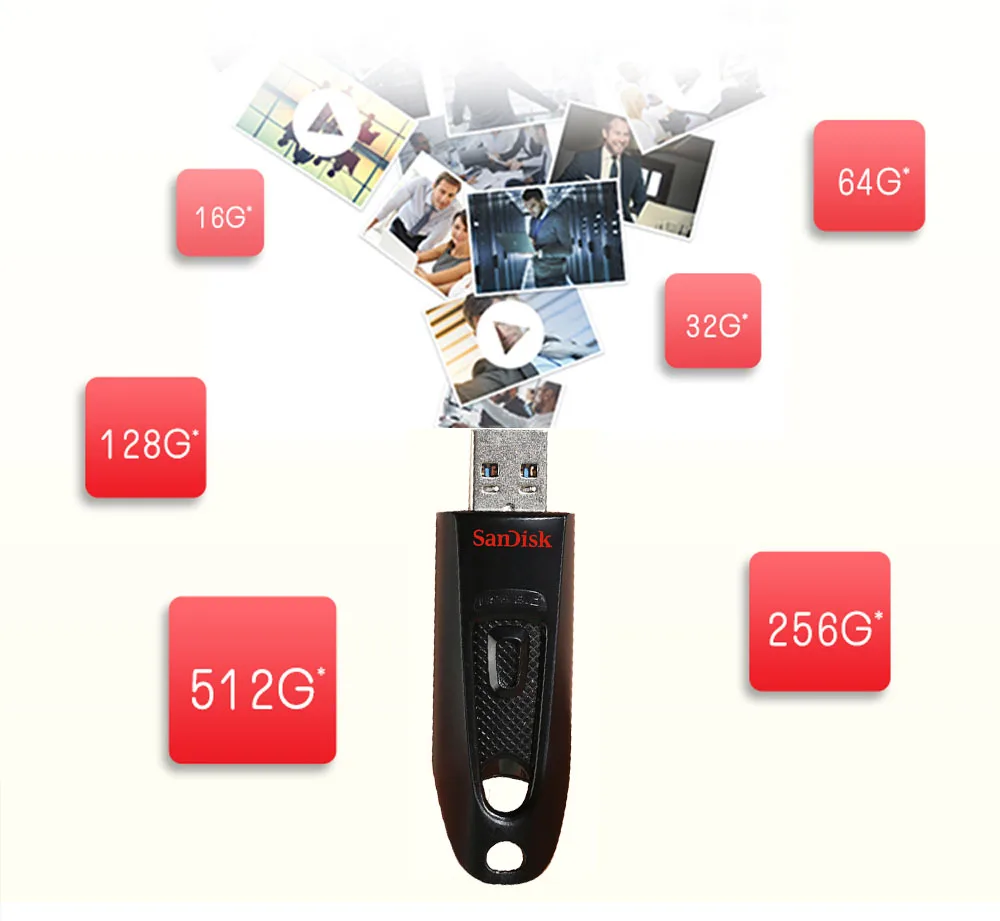 Ofrecida en capacidades de hasta 256 GB, la unidad flash SanDisk Ultra USB 3.0 puede contener todos sus medios favoritos y documentos importantes, incluidas fotografías de alta resolución, MP3, películas, presentaciones y archivos gráficos.