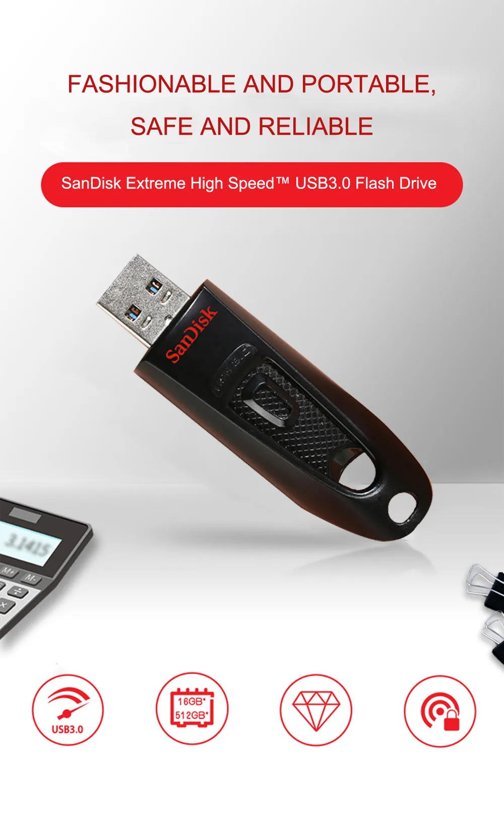 Comprar SanDisk Ultra USB Flash Drive 256GB 128GB 64GB Flashdisk 32GB 512GB USB 3,0 Pen Drive 130 MB/s USB Stick para PC/portátil U Disk