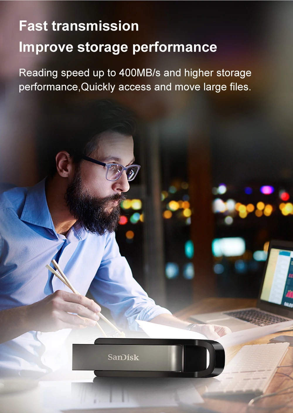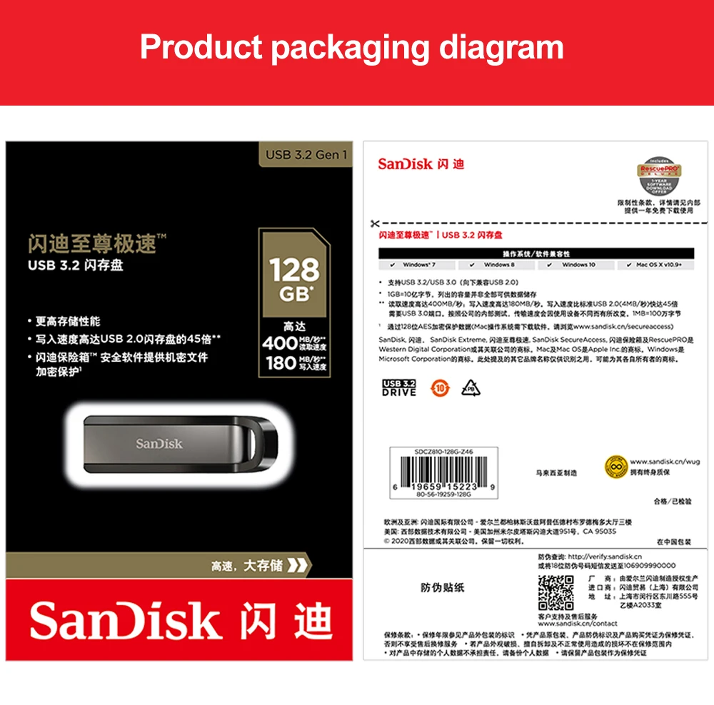 Comprar SanDisk-unidad Flash Extreme Go USB3.2 Gen 1, 256GB, 128GB, 64GB, alta velocidad, 400 MB/s, unidad de memoria Flash, CZ810