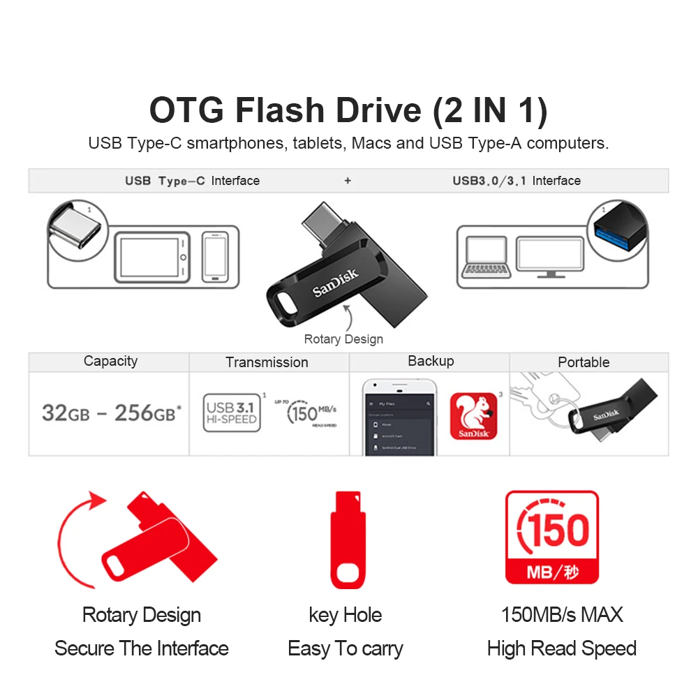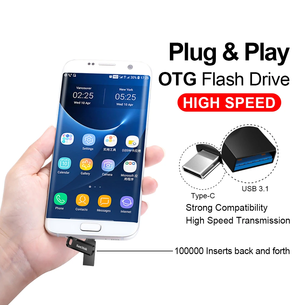 Comprar SanDisk-unidad Flash Ultra 128G Tipo C para teléfono inteligente, Tablet, ordenador, SDDDC3, 64G, G46, 2 en 1, 32G, USB tipo A