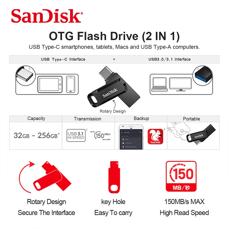 Comprar SanDisk-unidad Flash Ultra 128G Tipo C para teléfono inteligente, Tablet, ordenador, SDDDC3, 64G, G46, 2 en 1, 32G, USB tipo A