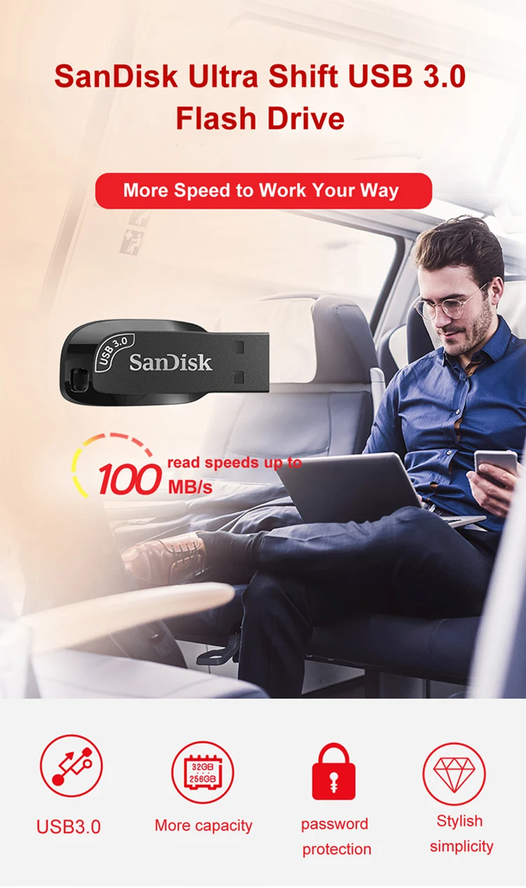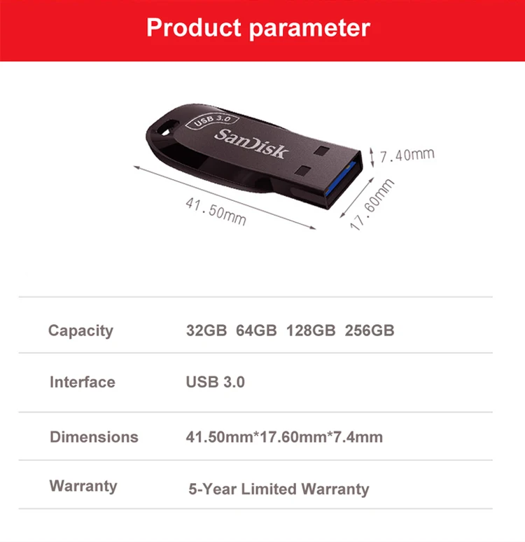 Comprar SanDisk-unidad Flash USB 3,0, CZ410 memoria USB, 32GB, 64GB, disco en U negro, 128GB, 256GB, Mini Pendrive
