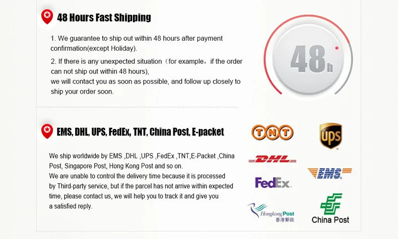 5.We can extend the buyer protection time if you didn't get the goods,pls Leave message before the end time of 5 days.pls don't open dispute first,many thanks.