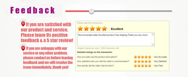 2. Please kindly leave us positive feedback, we will try our best to do better.
