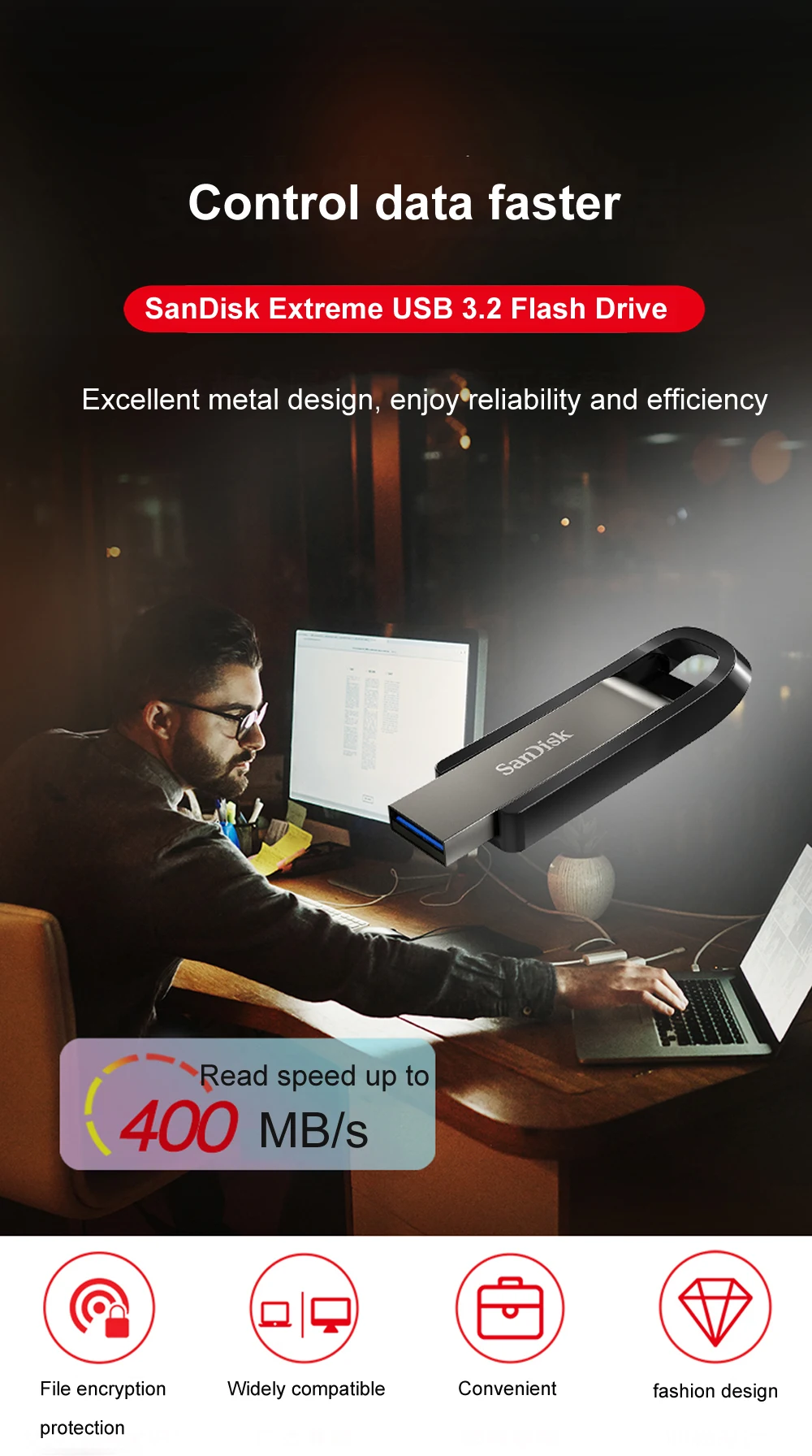 Comprar SanDisk-unidad de memoria Flash CZ810, USB 3,2 Gen 1 Extreme Go, 128G, 256GB, alta velocidad, hasta 400 M/s