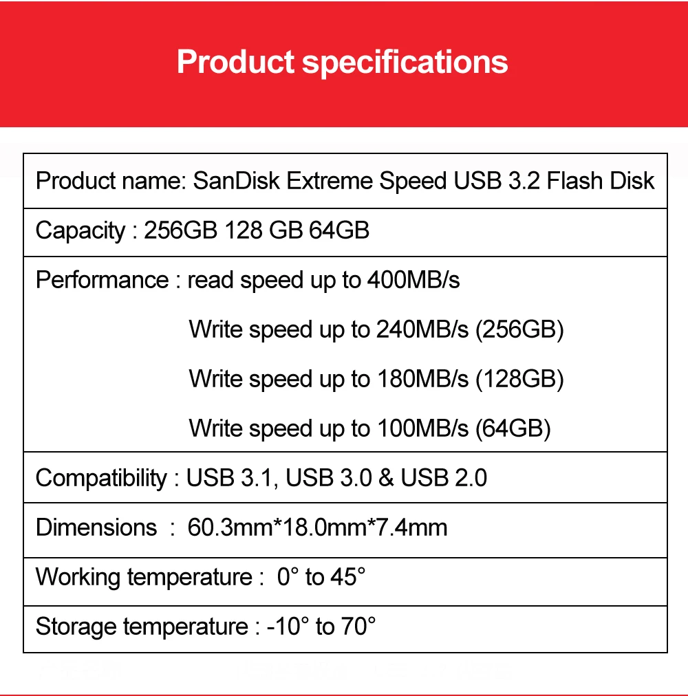 El valor de velocidad predeterminado oficial de fábrica es el valor máximo ideal, el proceso de prueba de velocidad real y el uso relacionado con el medio ambiente (como el uso de equipos, diferentes configuraciones, los diferentes tipos de velocidad de almacenamiento de archivos son diferentes, porque el tipo de archivo, tamaño, tamaño diferente y diferente), ¡Por lo que no podemos garantizar el valor de la velocidad real! El programa de velocidad en nuestro enlace es probado por un instrumento profesional, es mejor que use la interfaz 3,2, entonces puede obtener una buena velocidad.