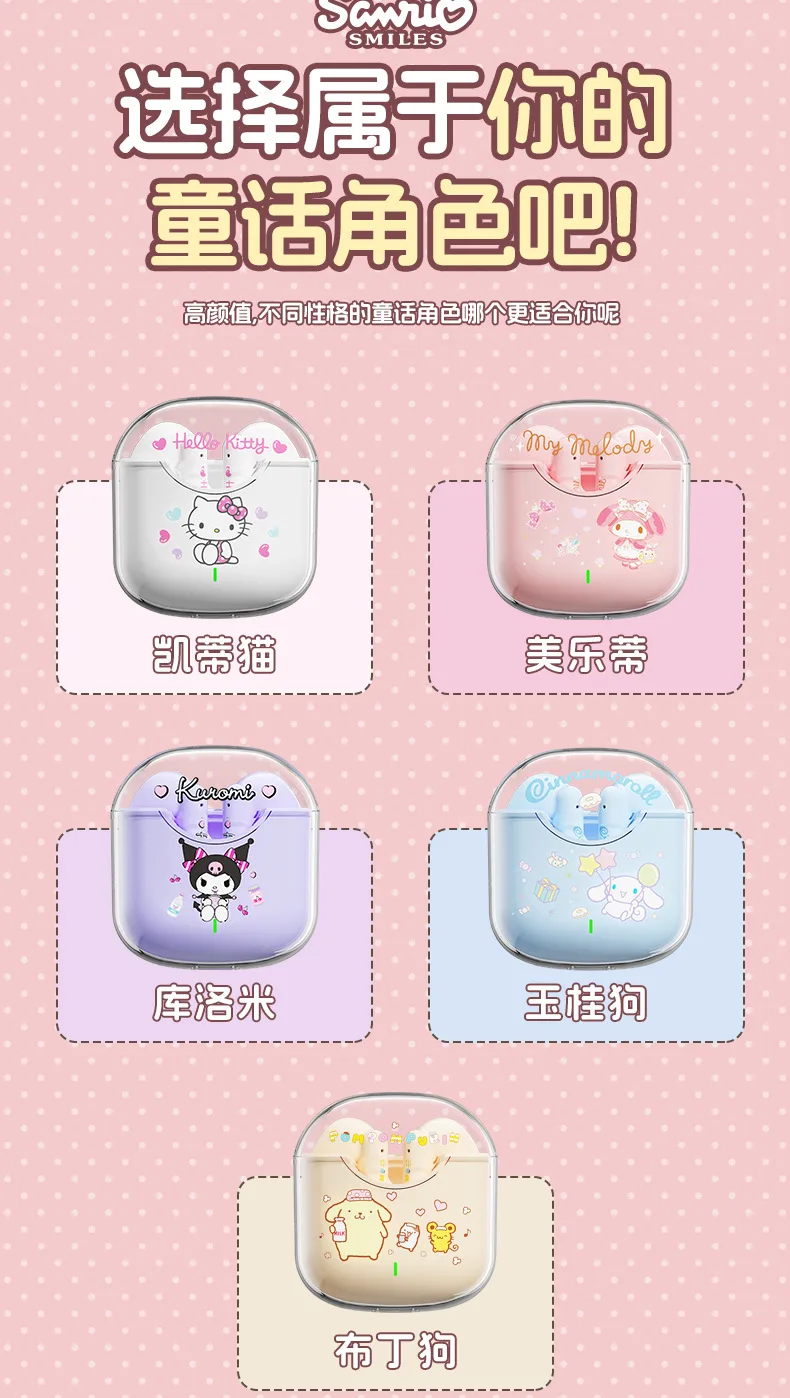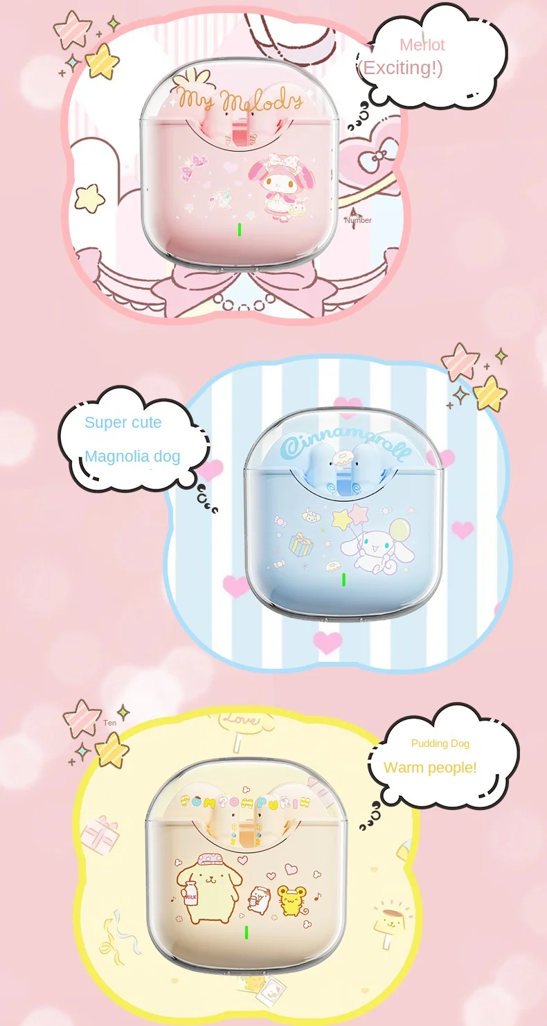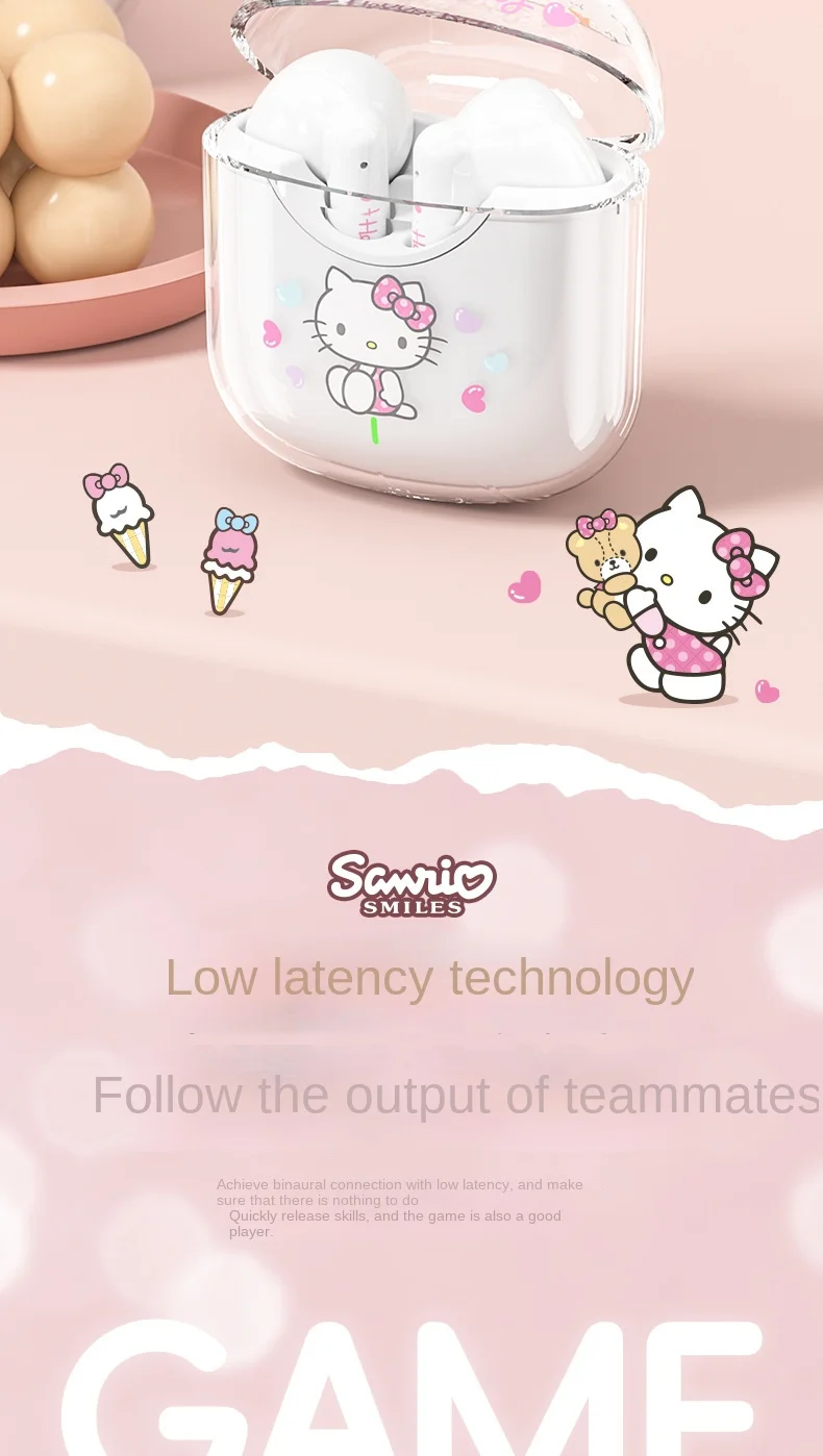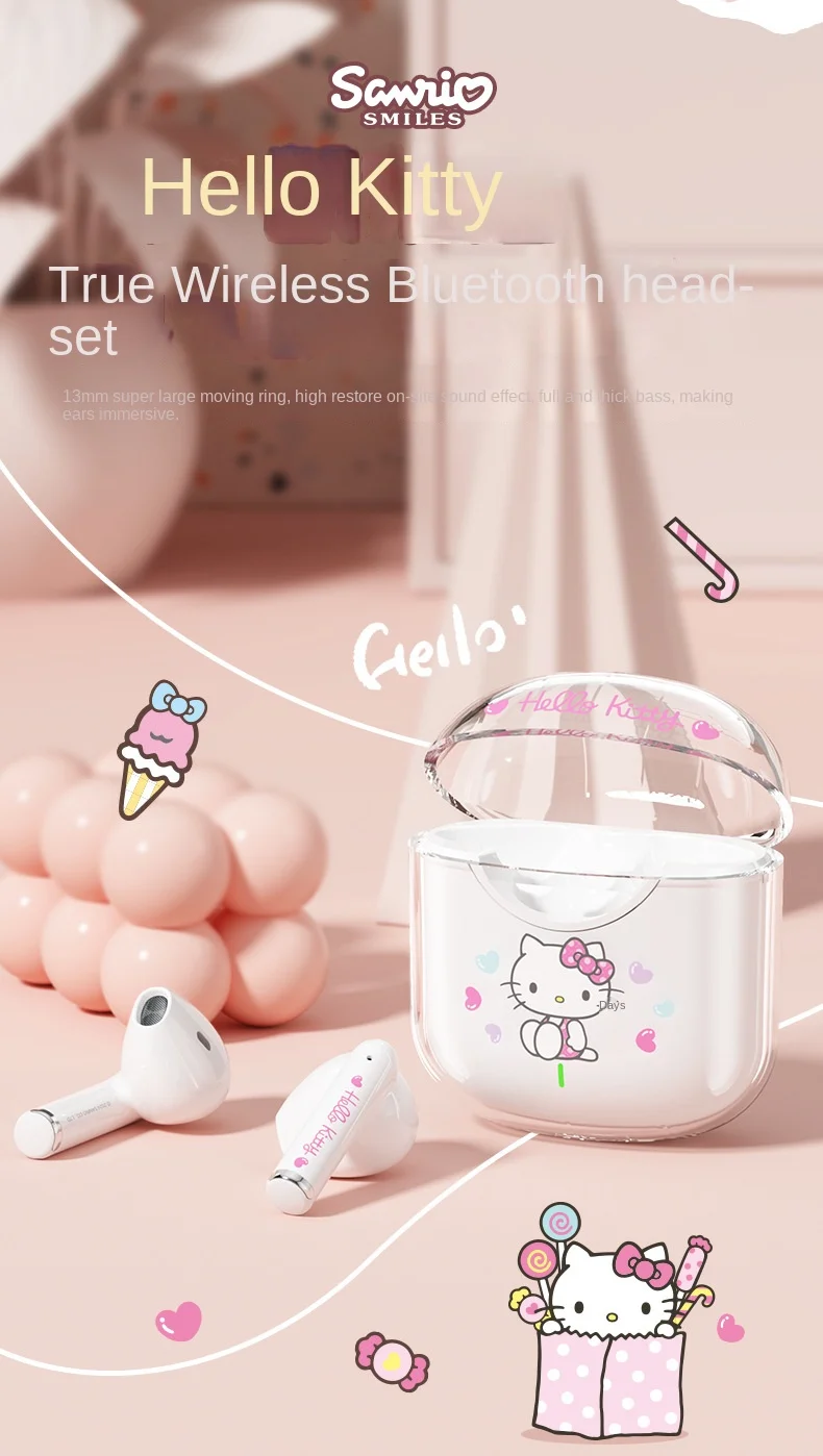 Comprar Sanrio-auriculares inalámbricos con Bluetooth, caja transparente con dibujos animados, edición deportiva de juego de alta belleza, novedad de 2024