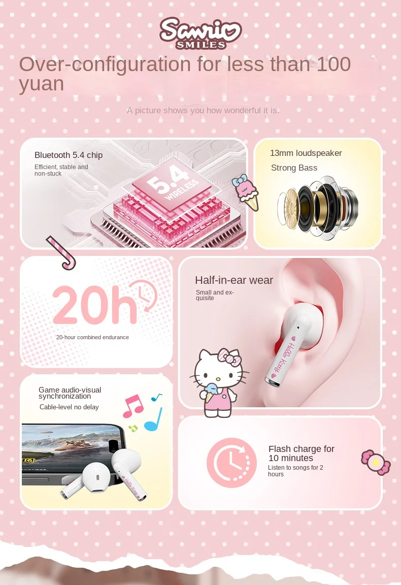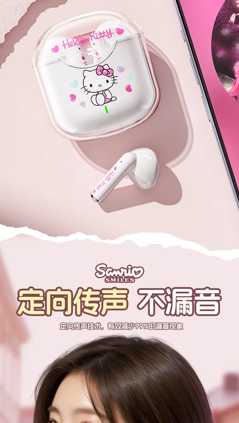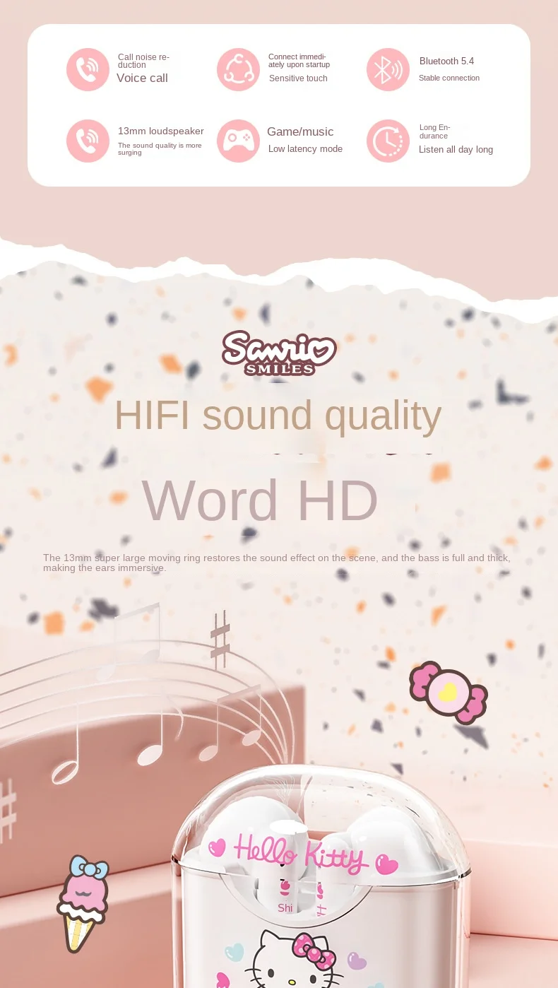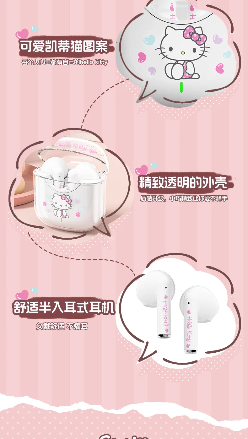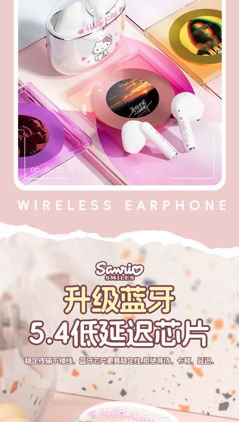 Comprar Sanrio-auriculares inalámbricos con Bluetooth, caja transparente con dibujos animados, edición deportiva de juego de alta belleza, novedad de 2024