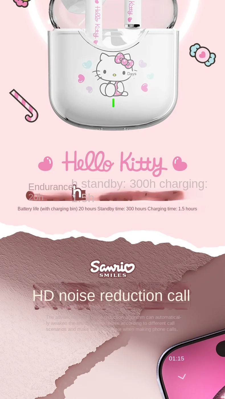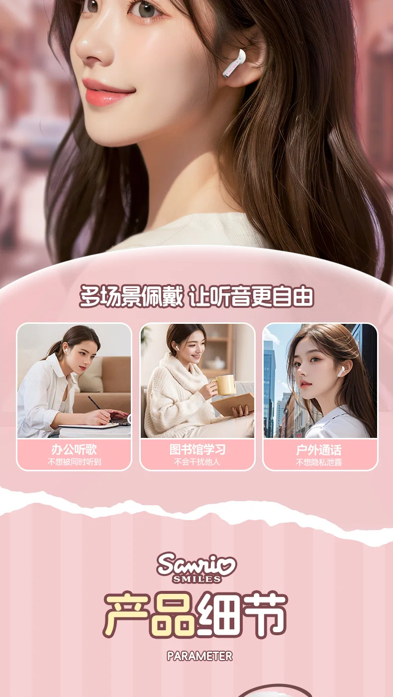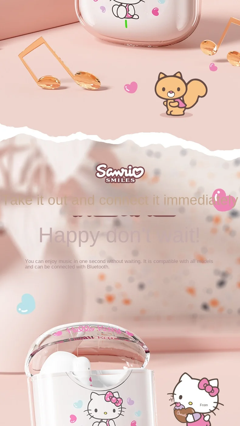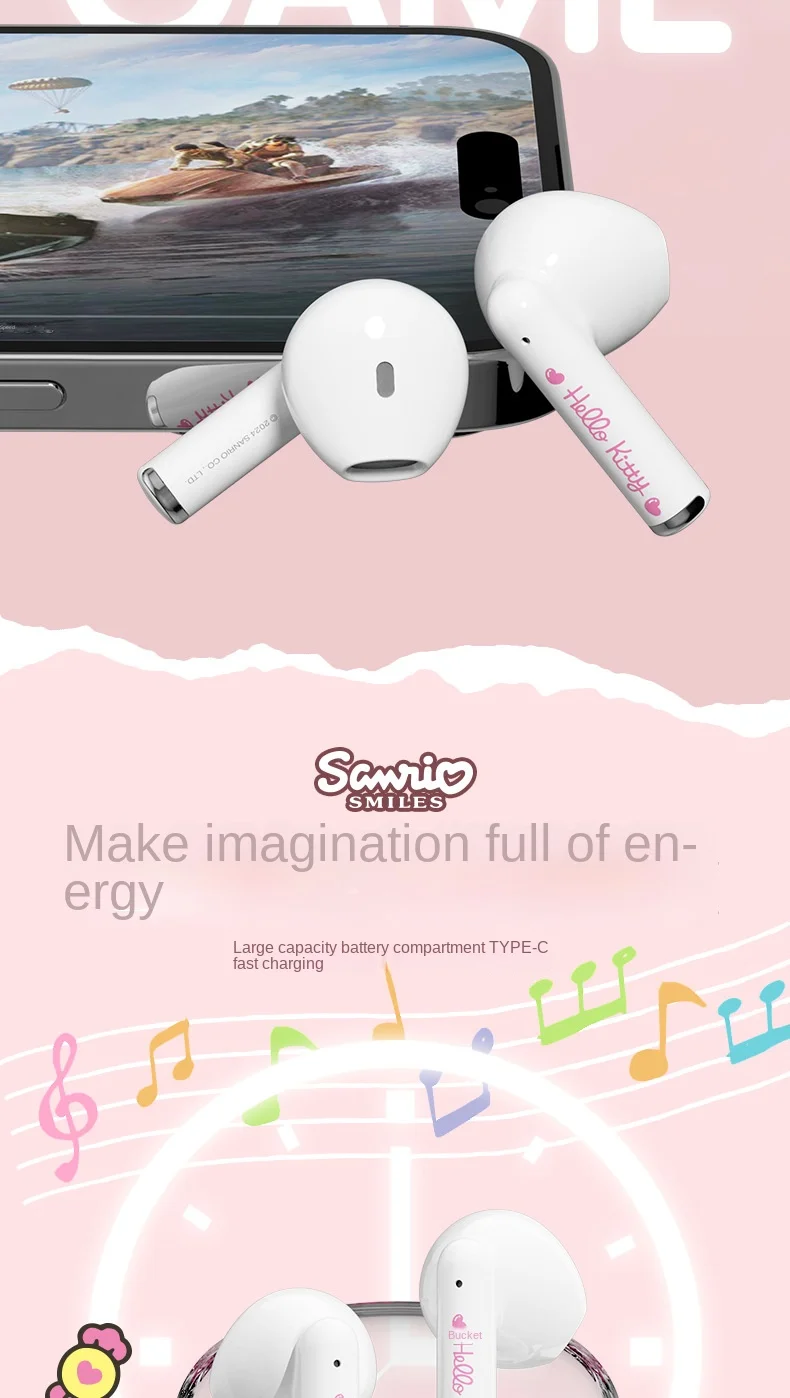 Comprar Sanrio-auriculares inalámbricos con Bluetooth, caja transparente con dibujos animados, edición deportiva de juego de alta belleza, novedad de 2024