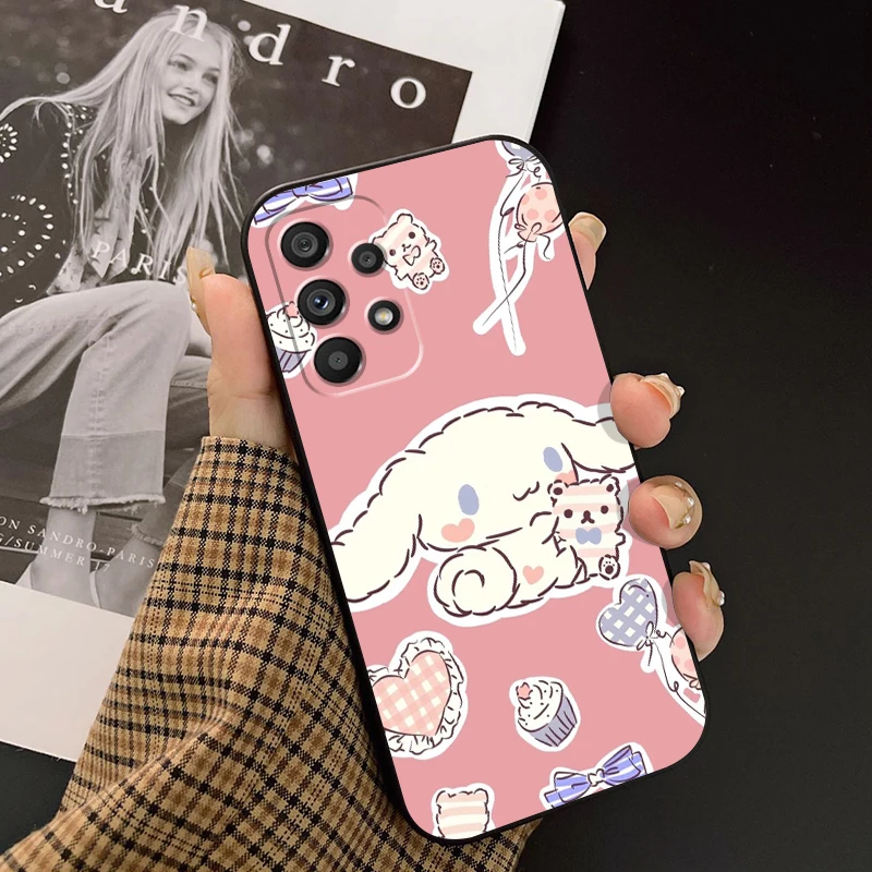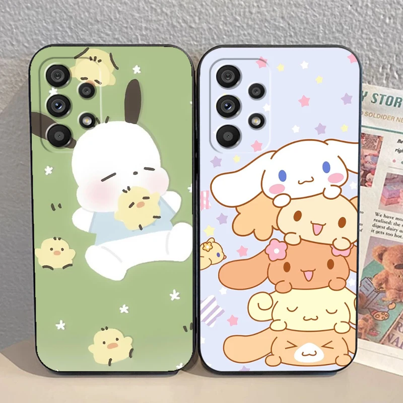 Sanrio Cinnamoroll Pochacco para Samsung, A53, A52, A33, A32, A51, A71, A21S, A13, A73, A55, A22, A23, A35, A72, A54, A12, 5G, negro suave