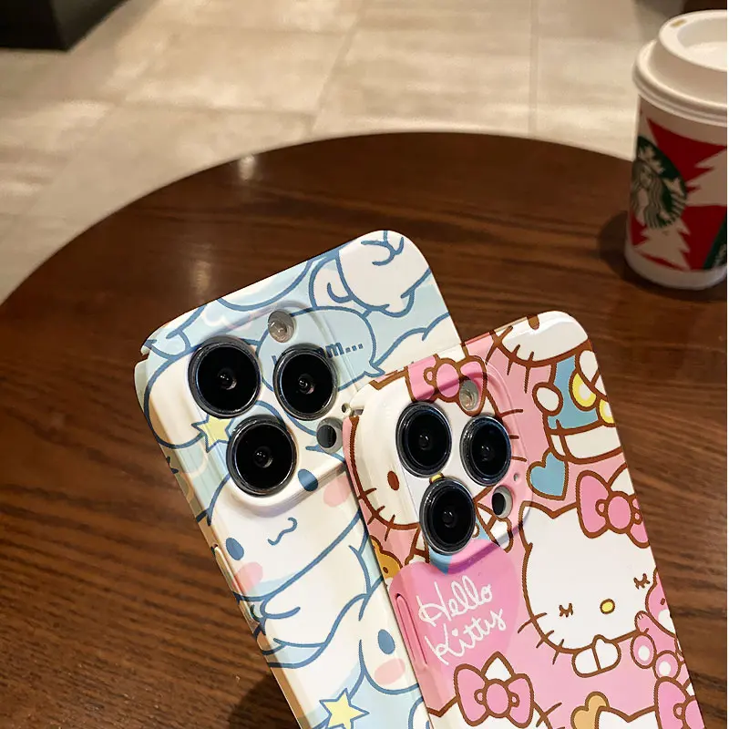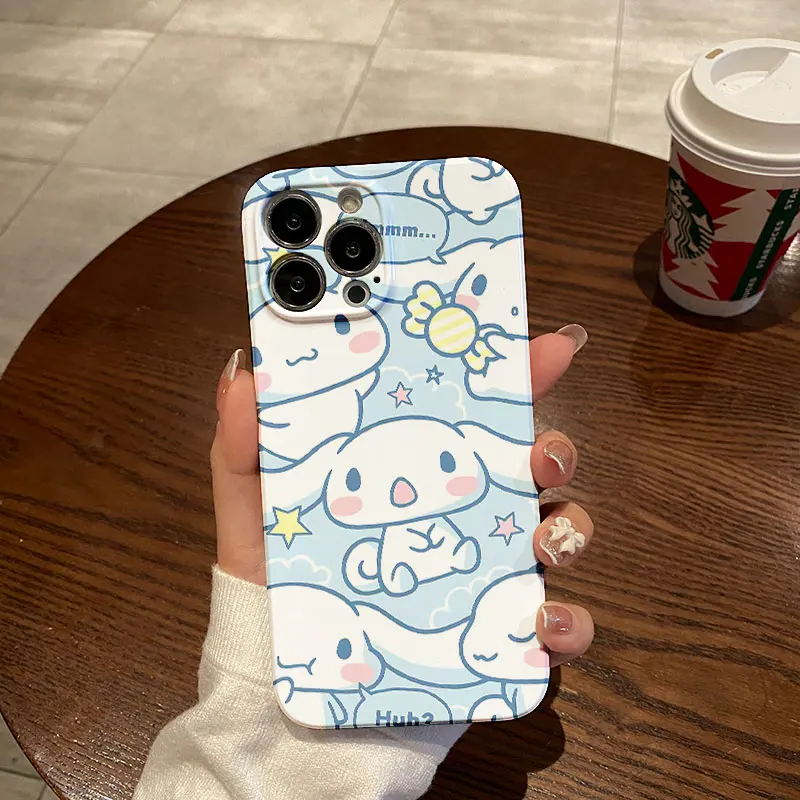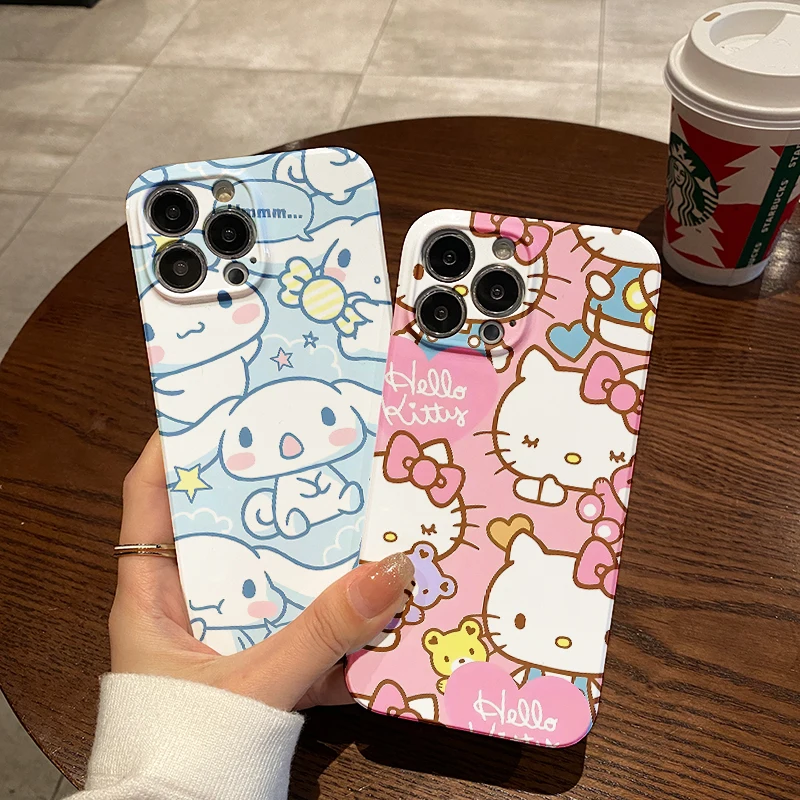 Sanrio-funda de Hello Kitty Cinnamoroll para IPhone, carcasa brillante HD para IPhone 16, 15, 14, 13, 12, 11 Pro Max, XS, XR, XSMax, 6, 7, 8 Plus