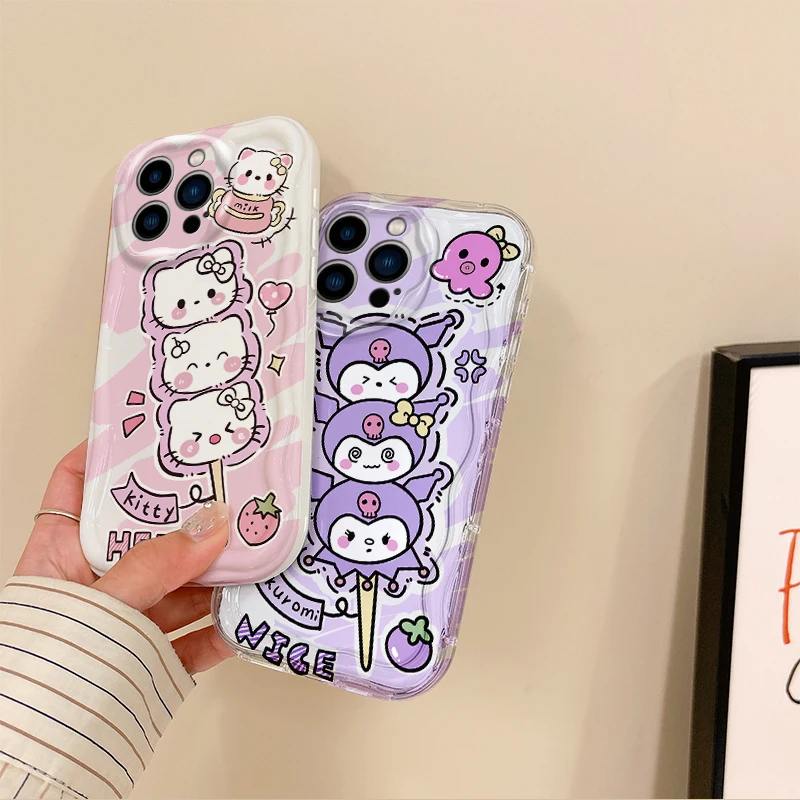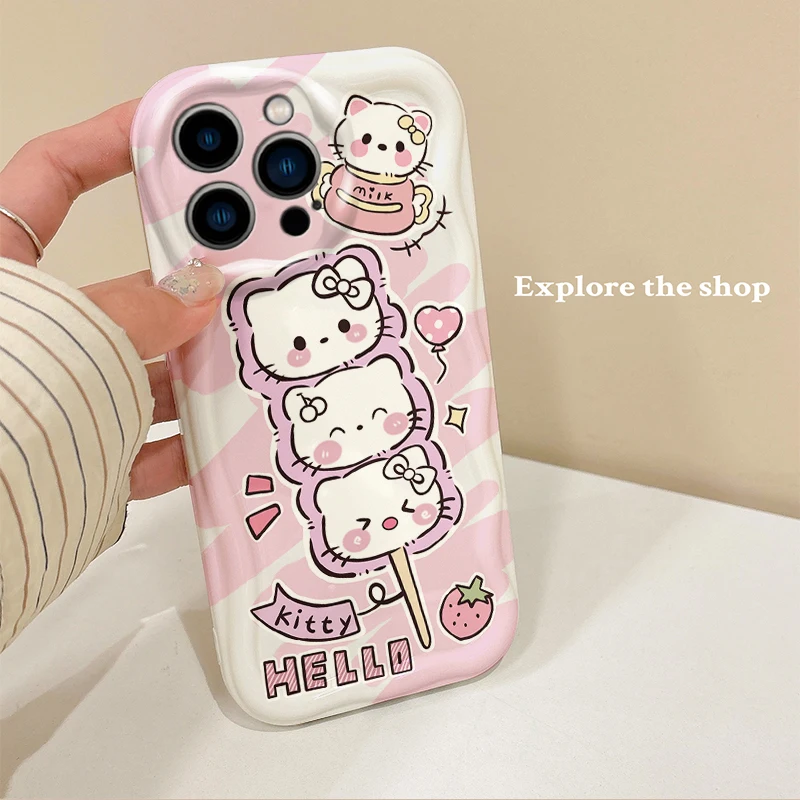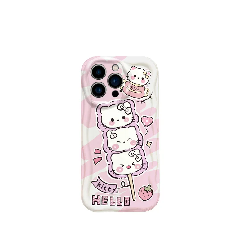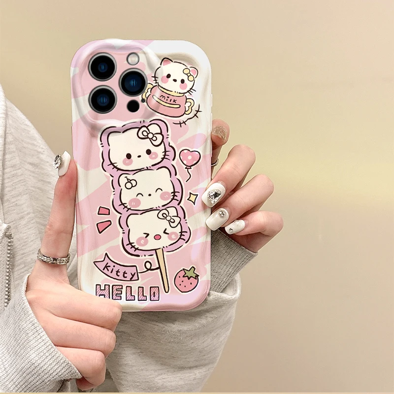 Sanrio-funda de silicona con dibujos de Hello Kitty para iPhone 16, 15, 14, pro Max, 13, 12, 11, 8, 7 Plus, X, XR, XS, Max