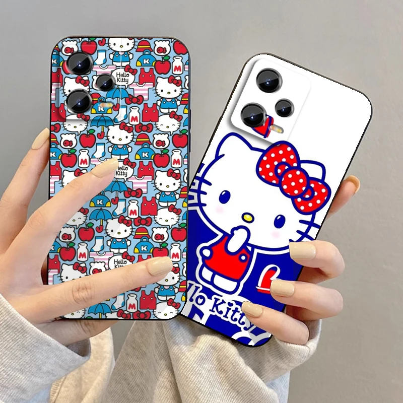 Sanrio-funda suave de lujo para Xiaomi Redmi Note 13, 12R, 12S, Turbo 11, 11T, 11S, 10, 10S Pro Plus, 5G, color negro, Hello Kitty