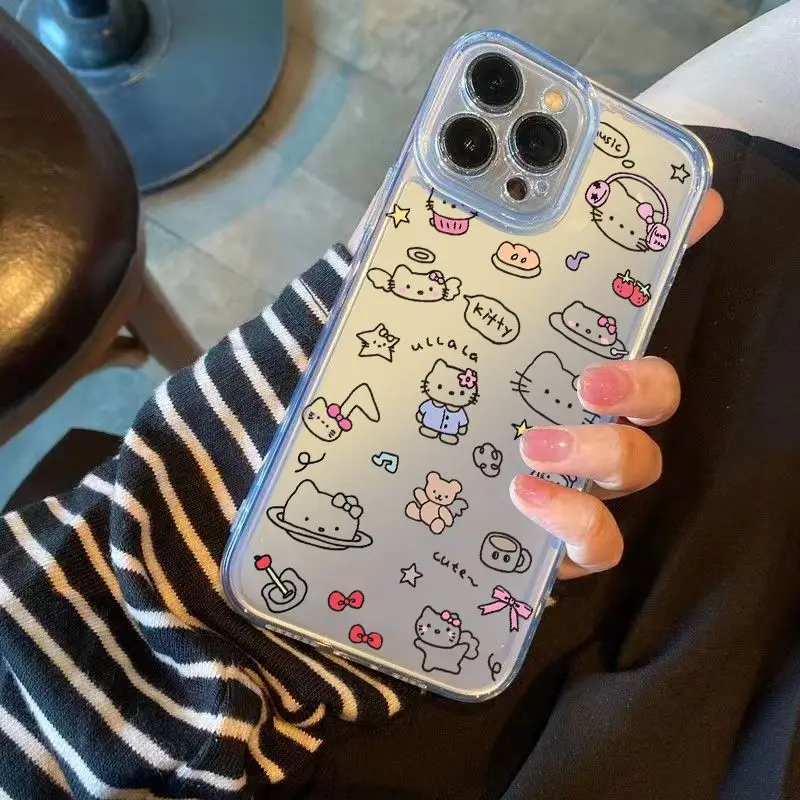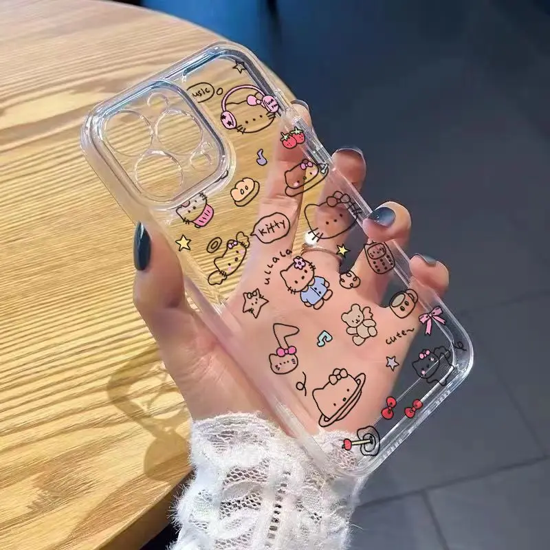 Comprar Sanrio-funda transparente de Hello Kitty para teléfono, carcasa bonita para OPPO Realme, C67, C65, C63, C55, C53, C35, C30, C11, 12, 10, 9, 8, 7, 6, 5, 3 Pro Plus, 4G, 5G