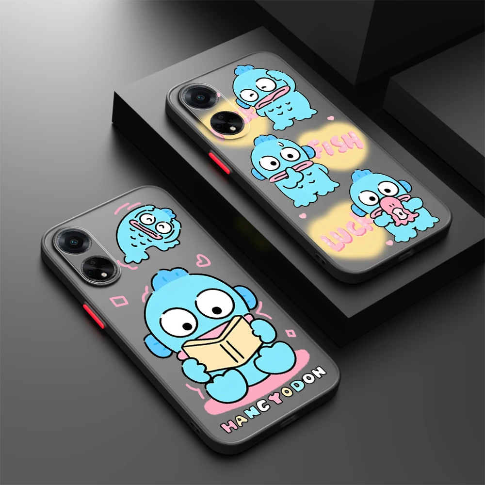 Comprar Sanrio HANGYODON pez feo translúcido esmerilado para OPPO X5 X3 A54S A5 A94 A16 A53S A57 A74 A72 A96 A98 A78 5G, funda suave para teléfono
