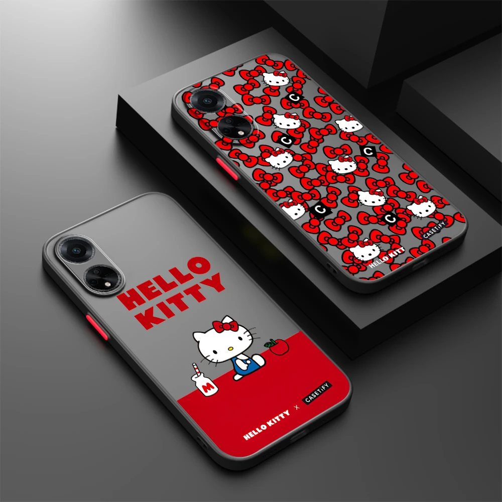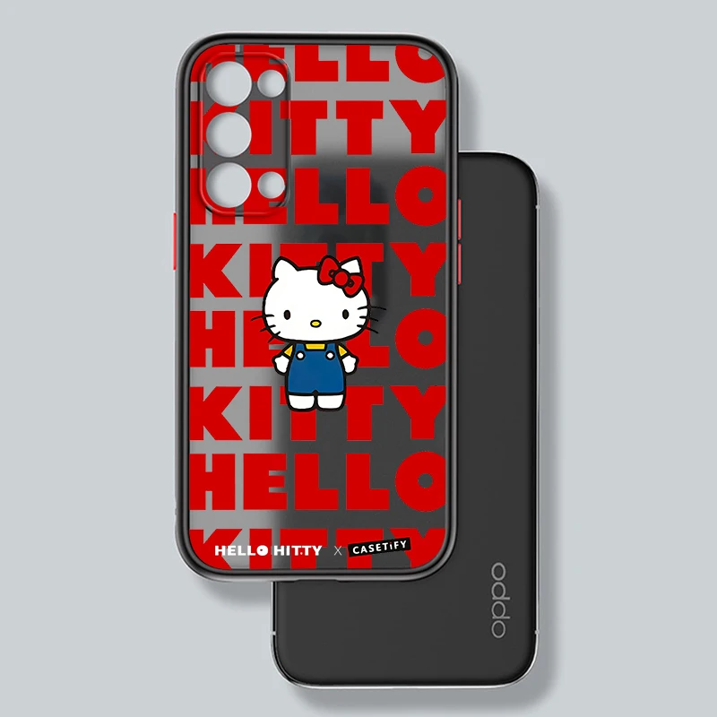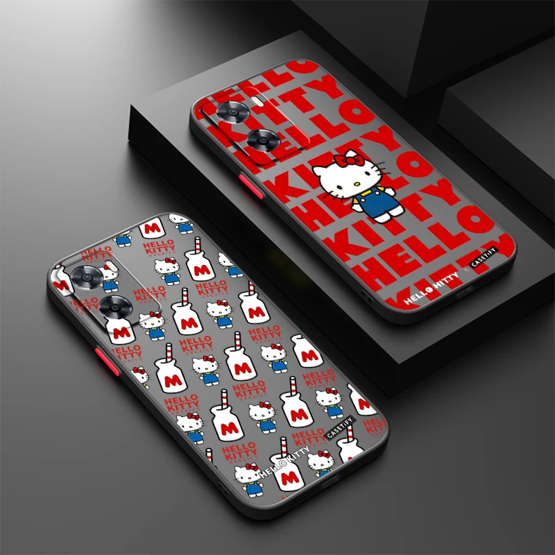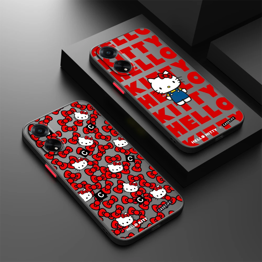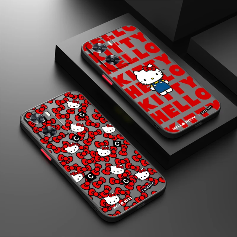 Comprar Sanrio Hello Kitty rojo de lujo translúcido esmerilado para OPPO X5 X3 A54S A5 A94 A16 A53S A57 A74 A72 A96 A98 A78 5G parte trasera