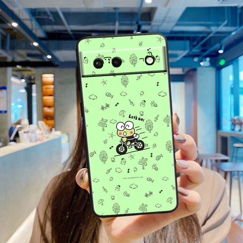 Sanrio-Kero Keroppi para Google Pixel 9, 8, 7A, 7, 6A, 6, 5A, 5, 4, 4A, XL, 5G, carcasa de silicona negra a prueba de golpes, funda de teléfono de TPU