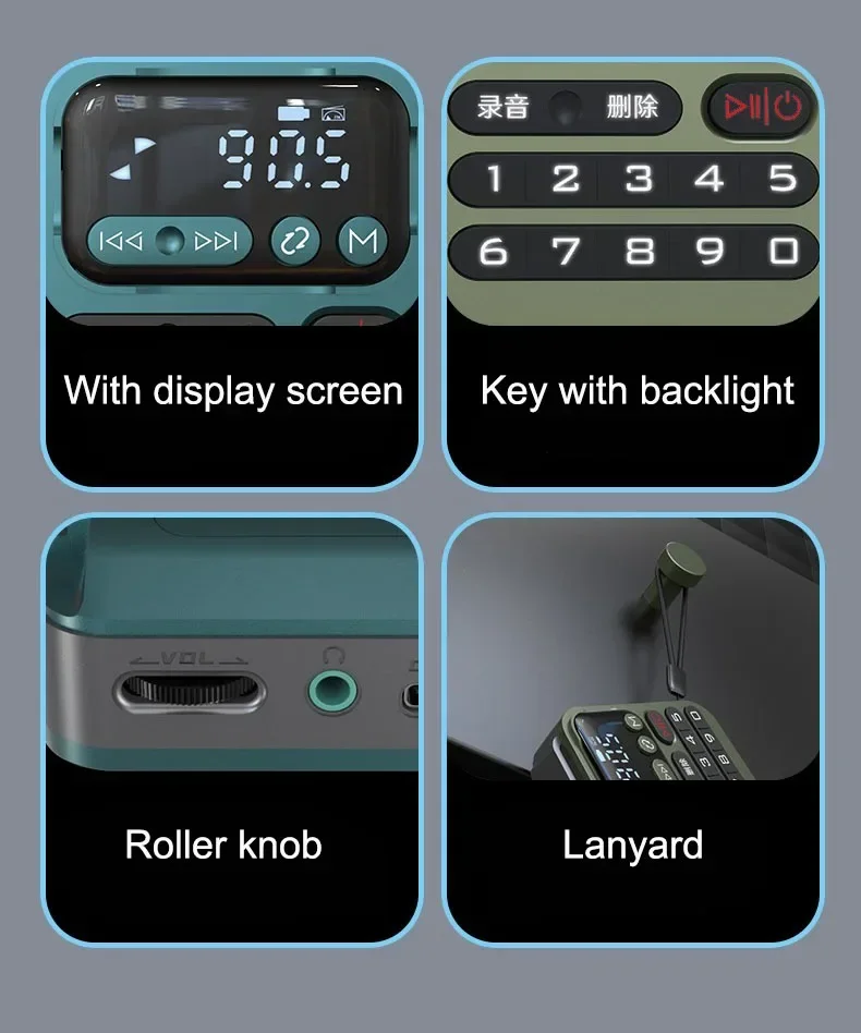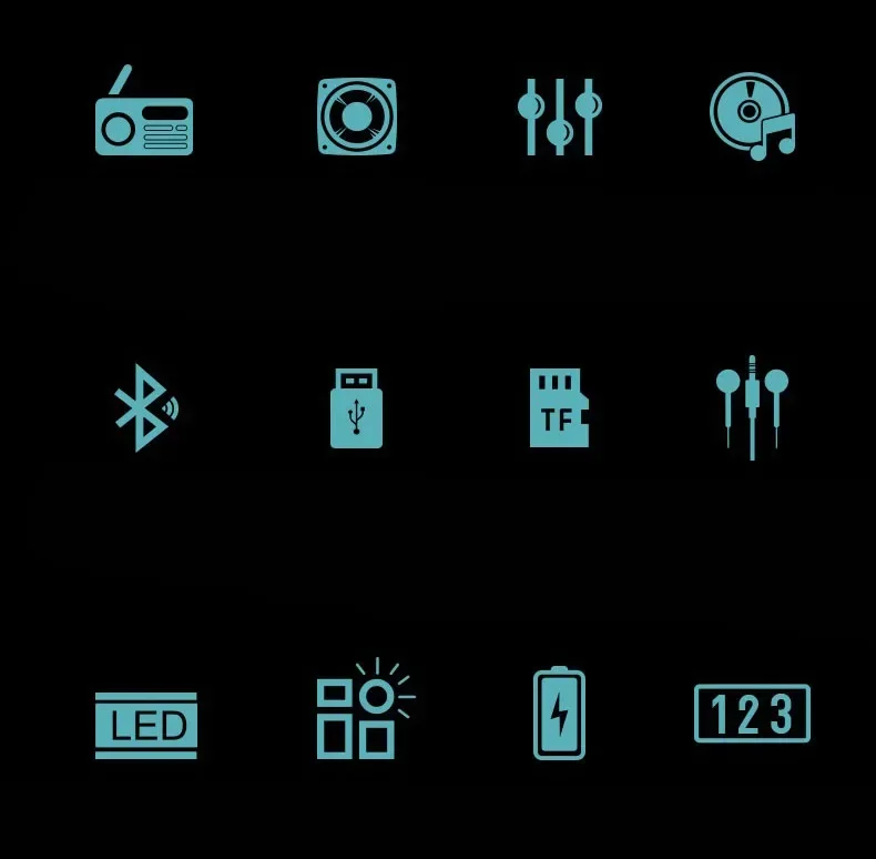 Funciones: Bluetooth, USB, tarjeta TF, música sin pérdidas, grabadora, auriculares, radio FM (70-108MHZ)