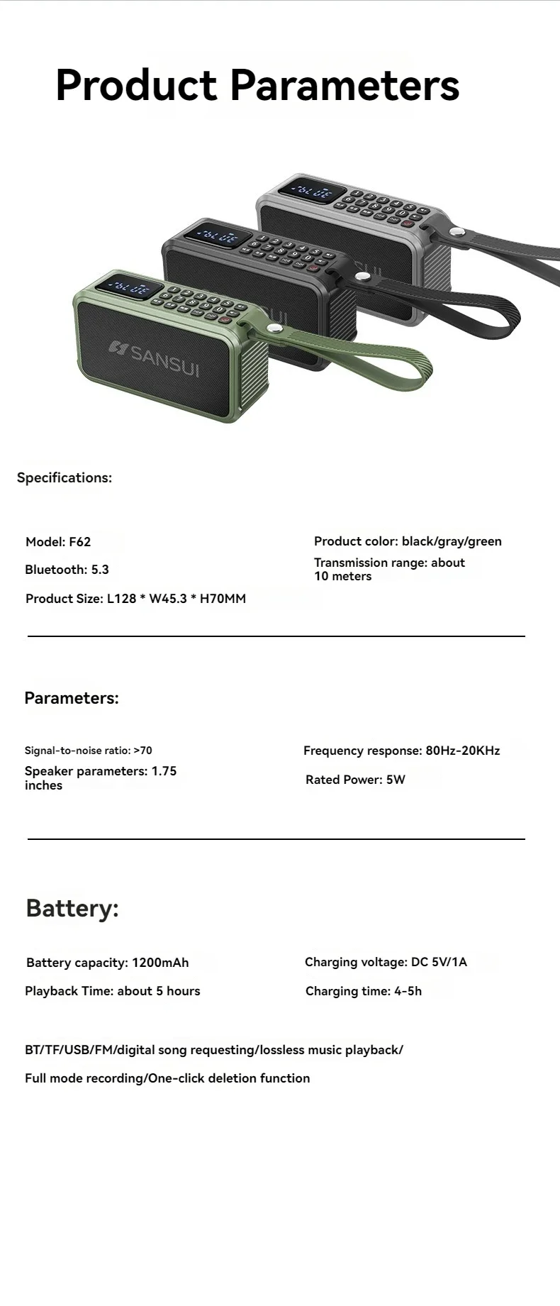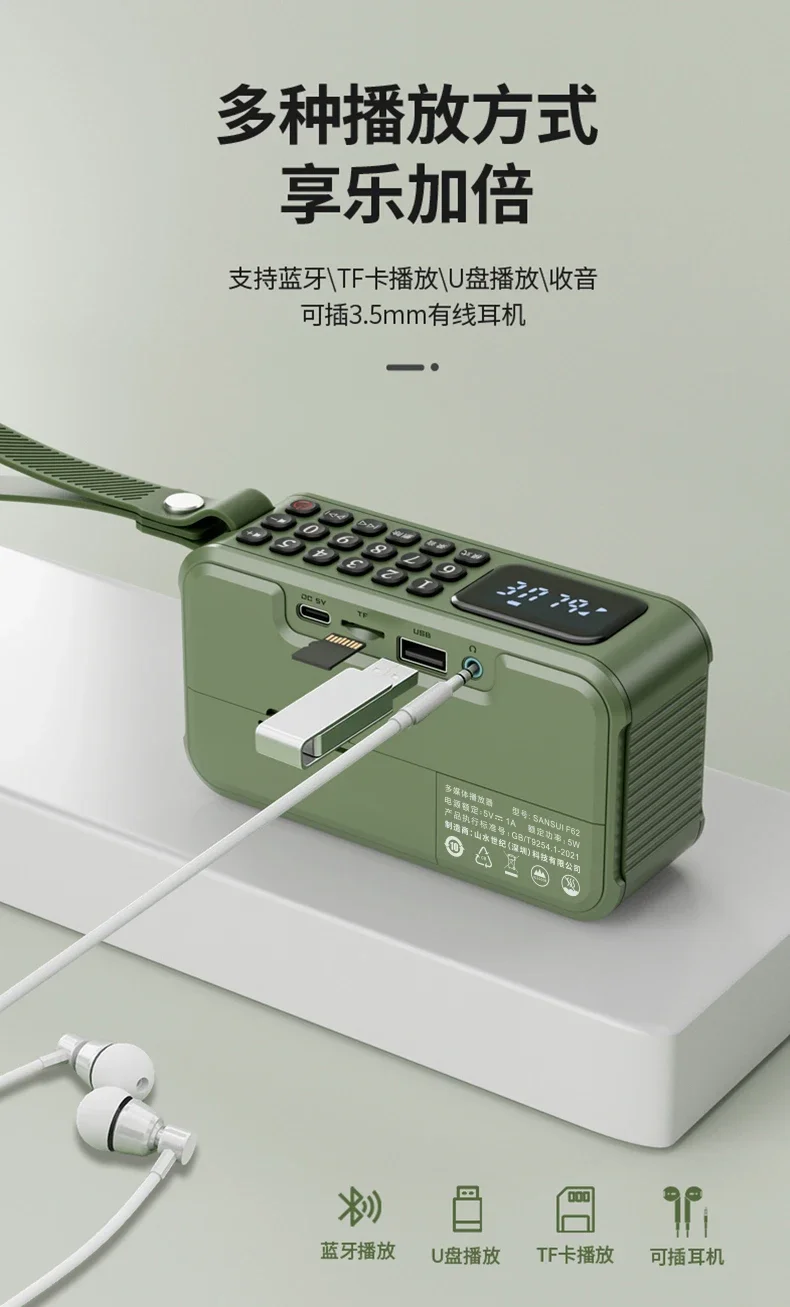 SANSUI F62 altavoz estéreo portátil con Bluetooth de graves altavoz Bluetooth Vintage Mini Radio Walkman reproductor de música compatible con TWS/FM/AUX