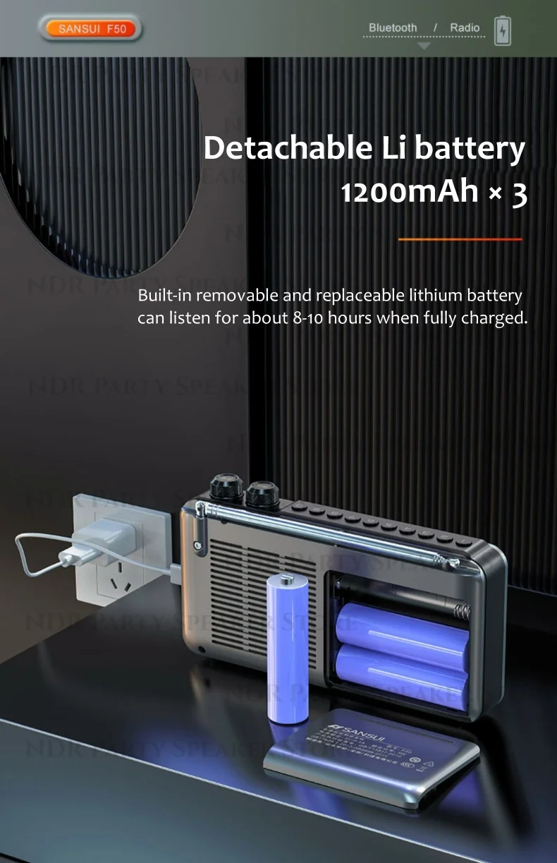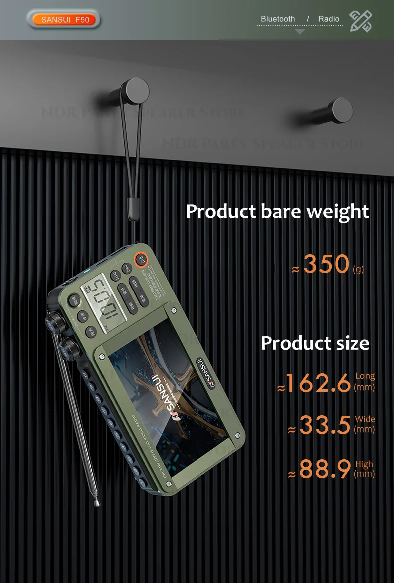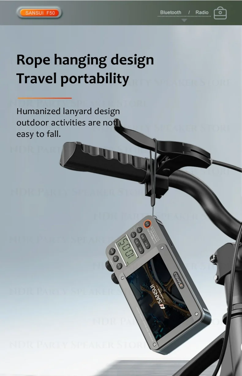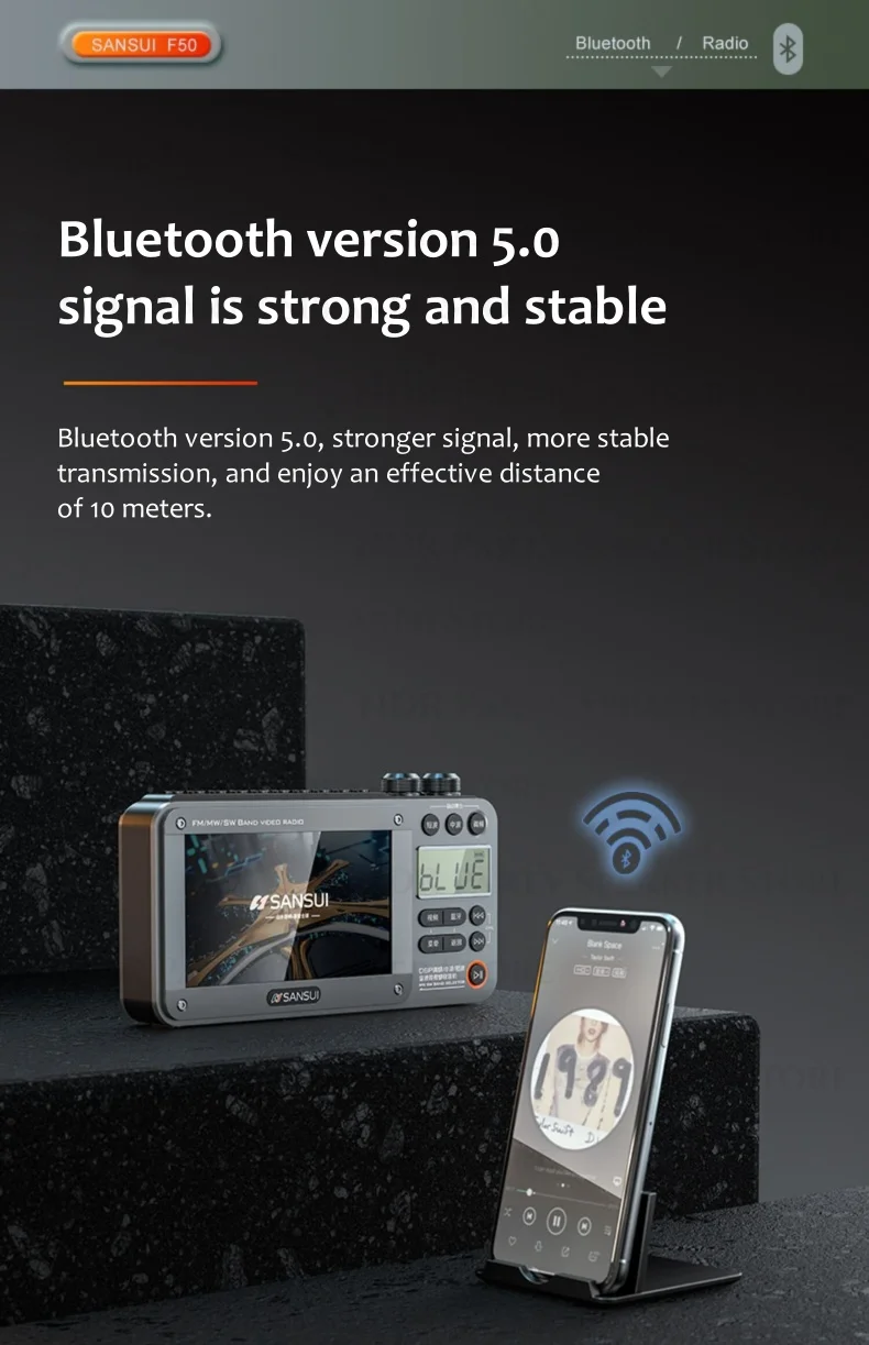 Comprar SANSUI-REPRODUCTOR DE vídeo y música F50 para exteriores, Radio FM/MW/SW HD de 4,3 pulgadas, tarjeta enchufable, altavoces inalámbricos portátiles recargables con Bluetooth