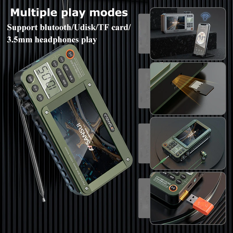 Comprar SANSUI-REPRODUCTOR DE vídeo y música F50 para exteriores, Radio FM/MW/SW HD de 4,3 pulgadas, tarjeta enchufable, altavoces inalámbricos portátiles recargables con Bluetooth