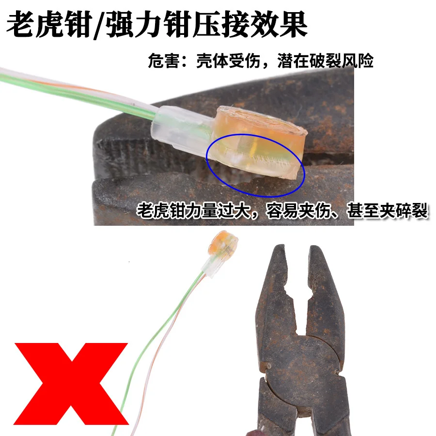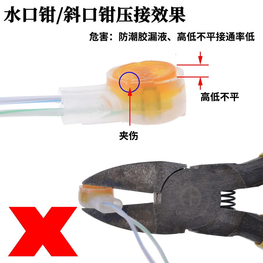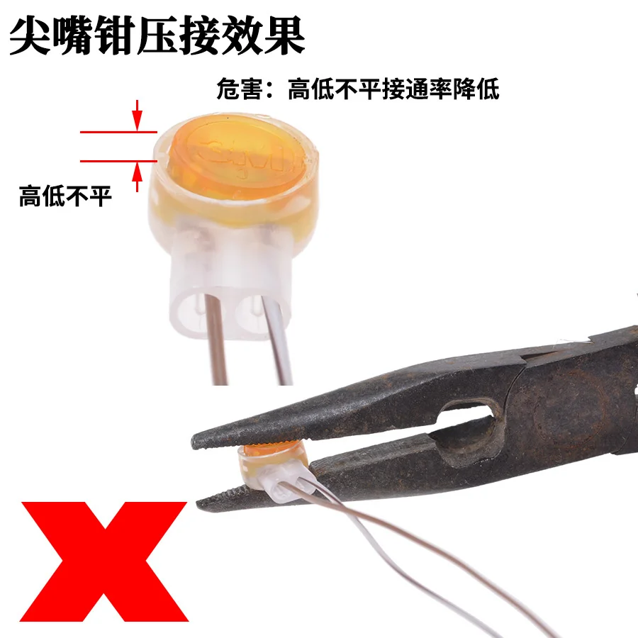 Usando el método:Toque, luego presione hacia abajo con unos alicates, de modo que los dos cables estén conectados, profesional y ahorren trabajo.