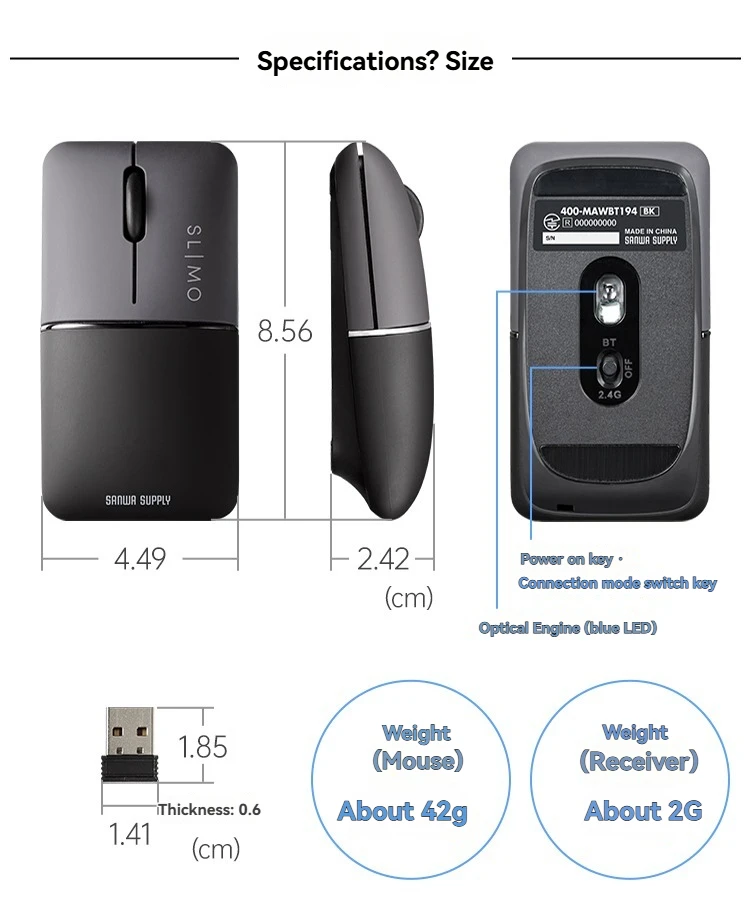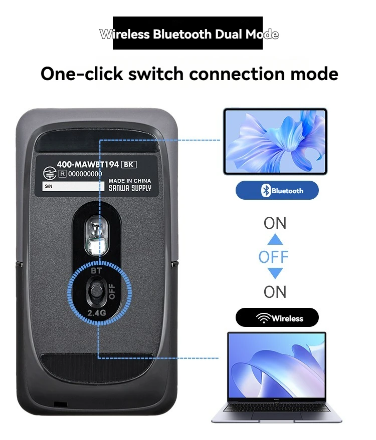 Ratón inalámbrico SANWA, modo dual, carga Bluetooth, portátil de escritorio silencioso, Universal, ligero y portátil, batería de larga duración