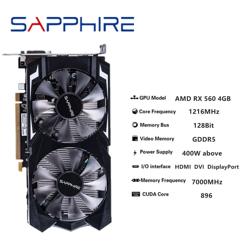 Comprar SAPPHIRE-tarjeta de vídeo RX 560 de 4GB, GPU Radeon RX 560D, 4G, RX570, RX580, juego de ordenador para tarjeta de vídeo AMD, mapa, HDMI usado