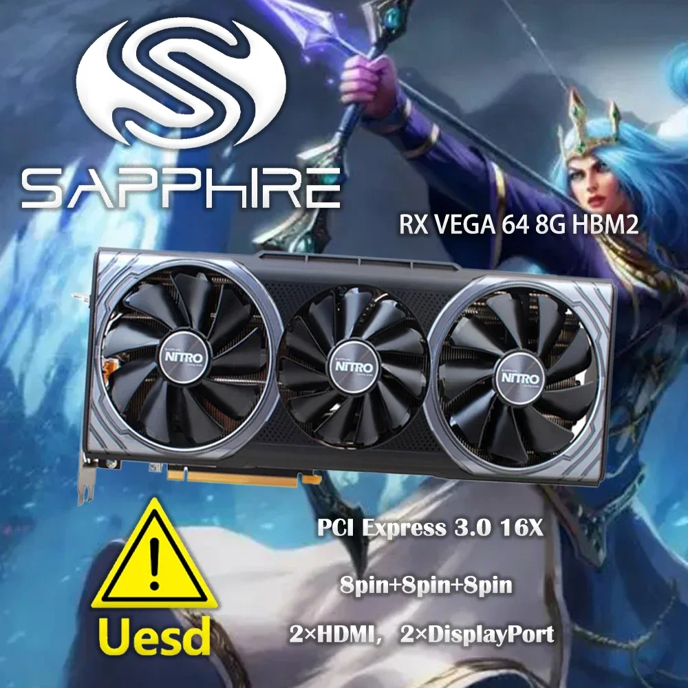 Comprar SAPPHIRE-tarjeta de vídeo usada NITRO + Radeon RX Vega, 64, 8GB, HBM2, PCI Express 3,0, 100410NT + SR