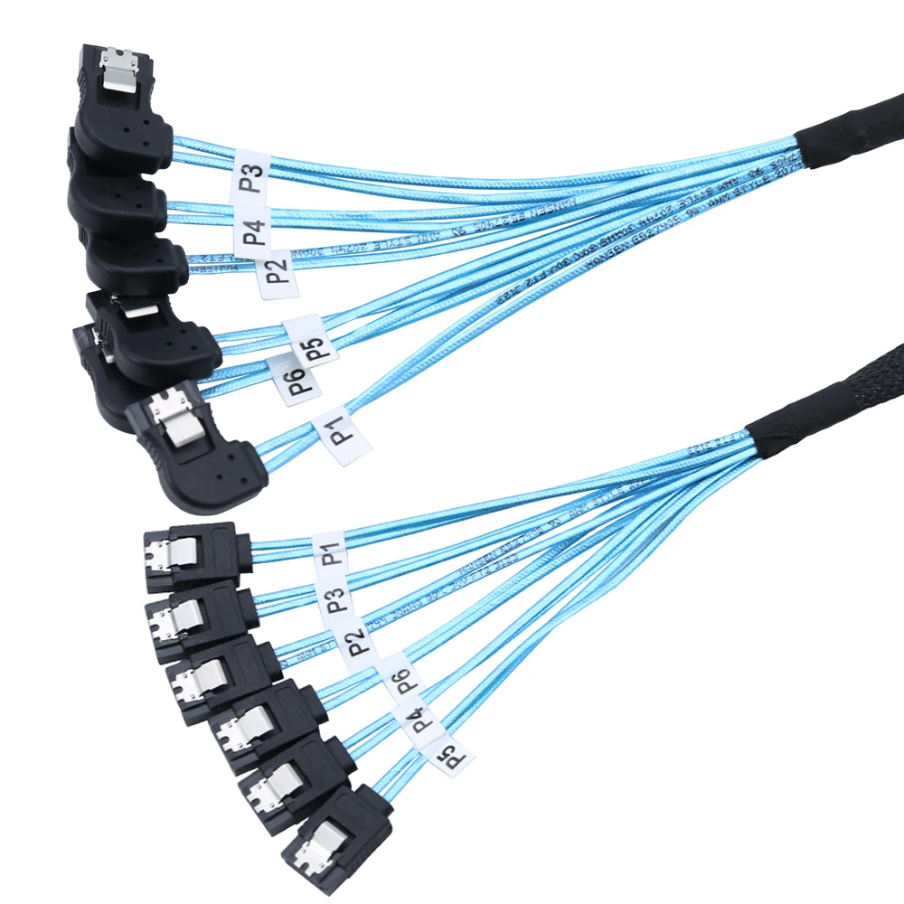 Comprar SAS4.0 6 SATA a 6 SATA 7Pin hembra ángulo recto SSD unidad de estado sólido Cable de datos