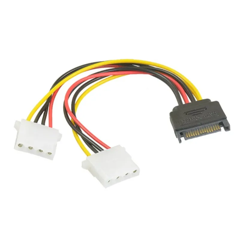 Cable de extensión de alimentación SATA de 15 pines macho a 2 hembra de 4 pines para disco duro IDE