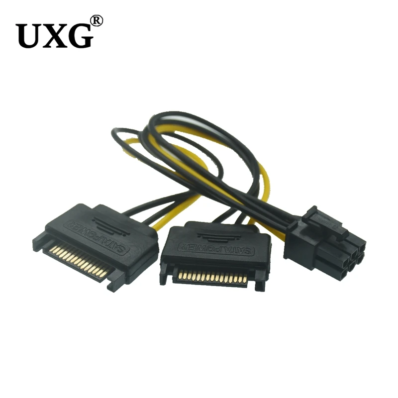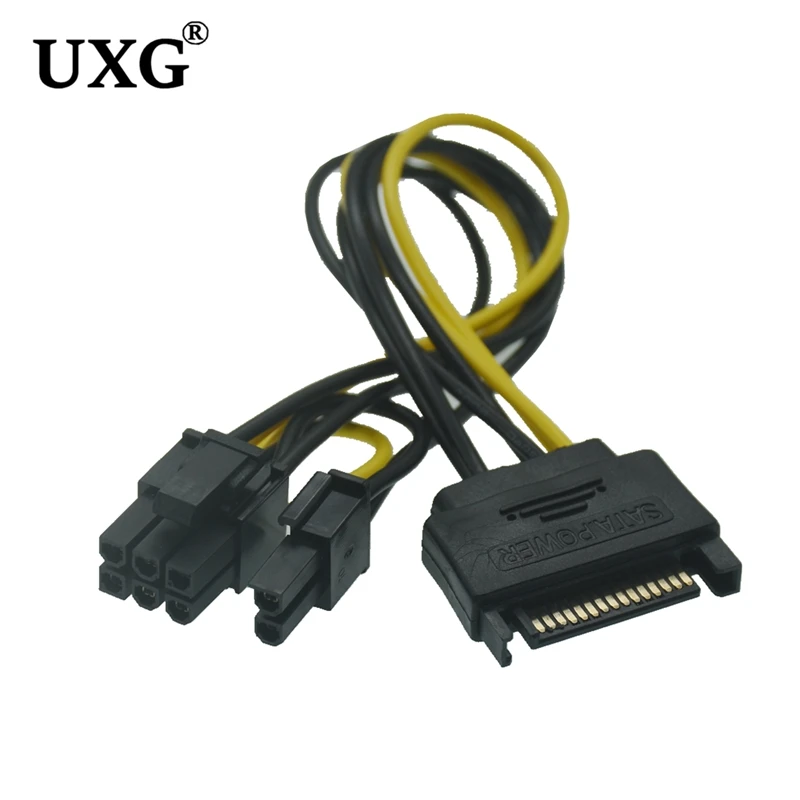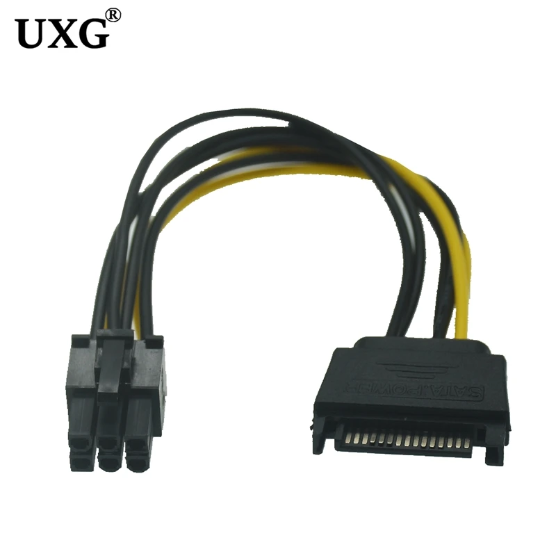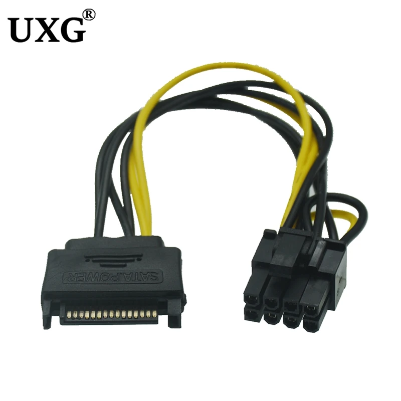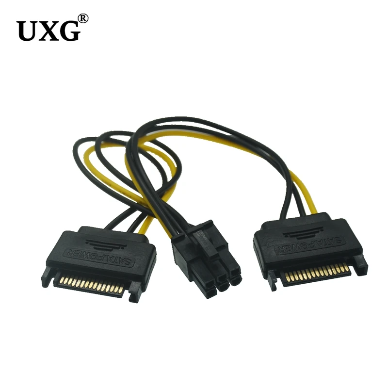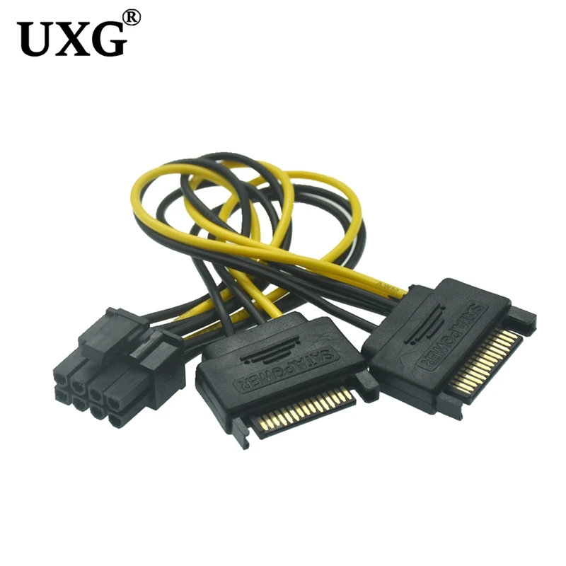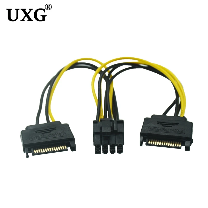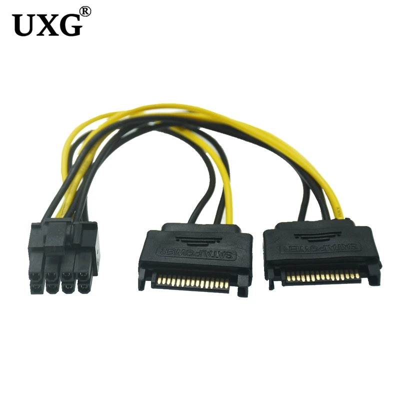 Comprar SATA Dual 15Pin M a tarjeta gráfica PCI-e PCIE 8 (6 + 2) Pin F Cable de alimentación de tarjeta de vídeo 8pin a Sata Y adaptador divisor 18AWG