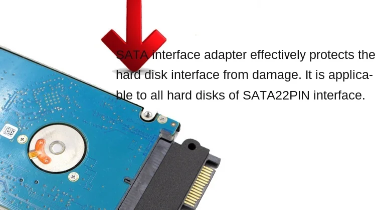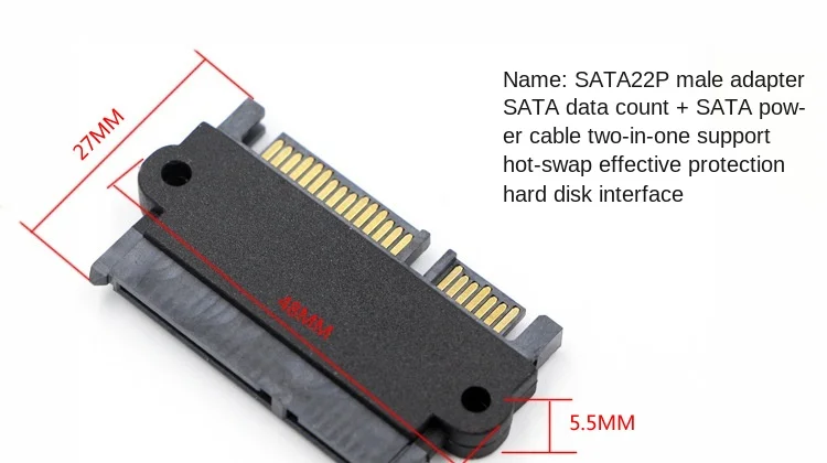 Interfaz macho a hembra SATA22PIN, este producto puede evitar que la interfaz del disco duro se dañe debido a la conexión y desconexión múltiple.
