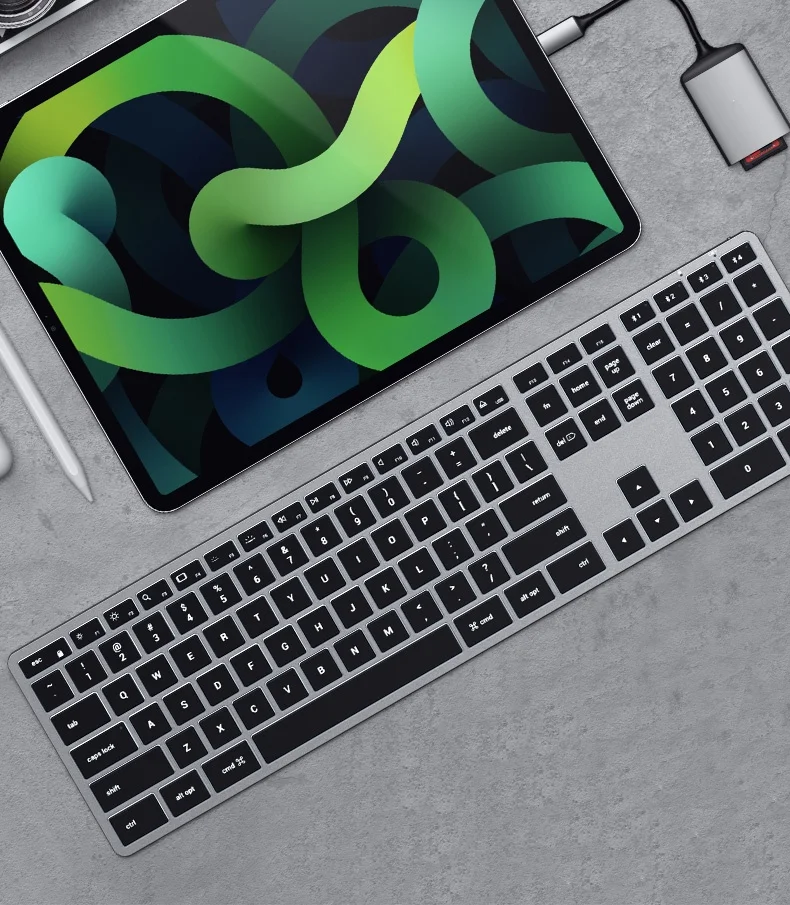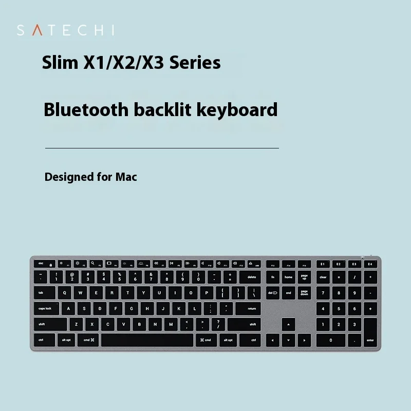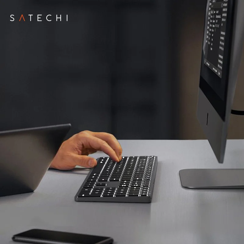 Satechi-teclado Universal inalámbrico con Bluetooth, marco de Metal recargable, teclas numéricas delgadas de tamaño completo, teclado de oficina Windows/macos