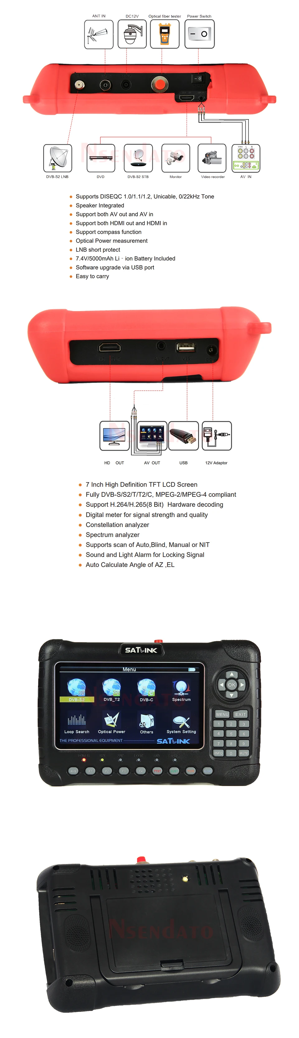 Comprar SATLINK-Buscador Medidor de Señal de Satélite, Analizador de Espectro, Artículo MPEG-4 de 7 Pulgadas, WS6980 DVB-S2 DVB-T2/C COMBO