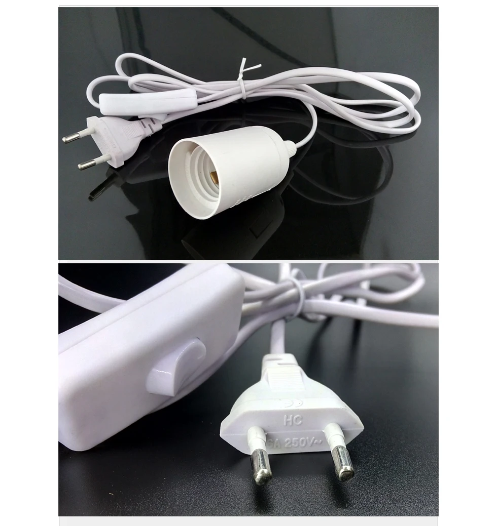 SAVE-soporte E27 Plug-and-play para enchufe E27, base E27, lámpara de luz LED, interruptor para controlar el cable de alimentación E27, enchufe europeo y ruso