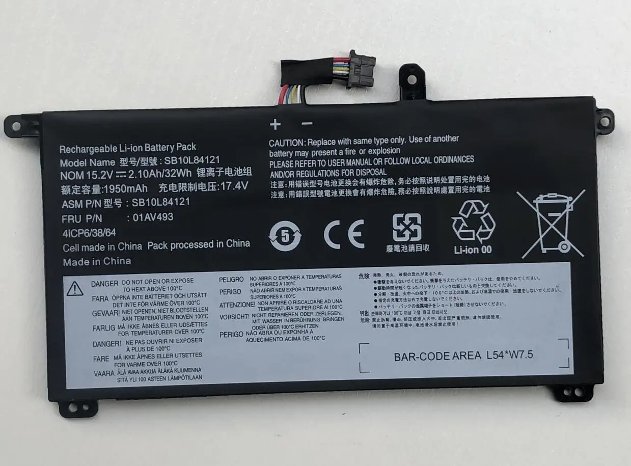 Batería para portátil 01AV493 para Lenovo Thinkpad T570 T580 P51S P52S serie SB10L84121 SB10L84122 SB10L84123 32WH