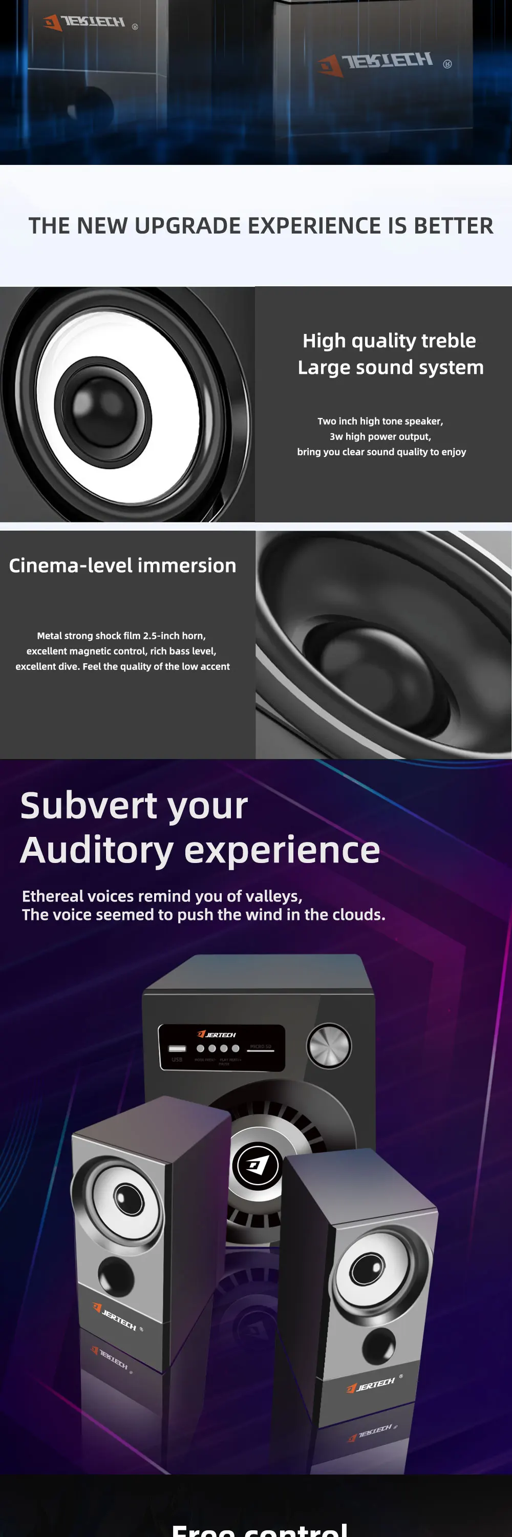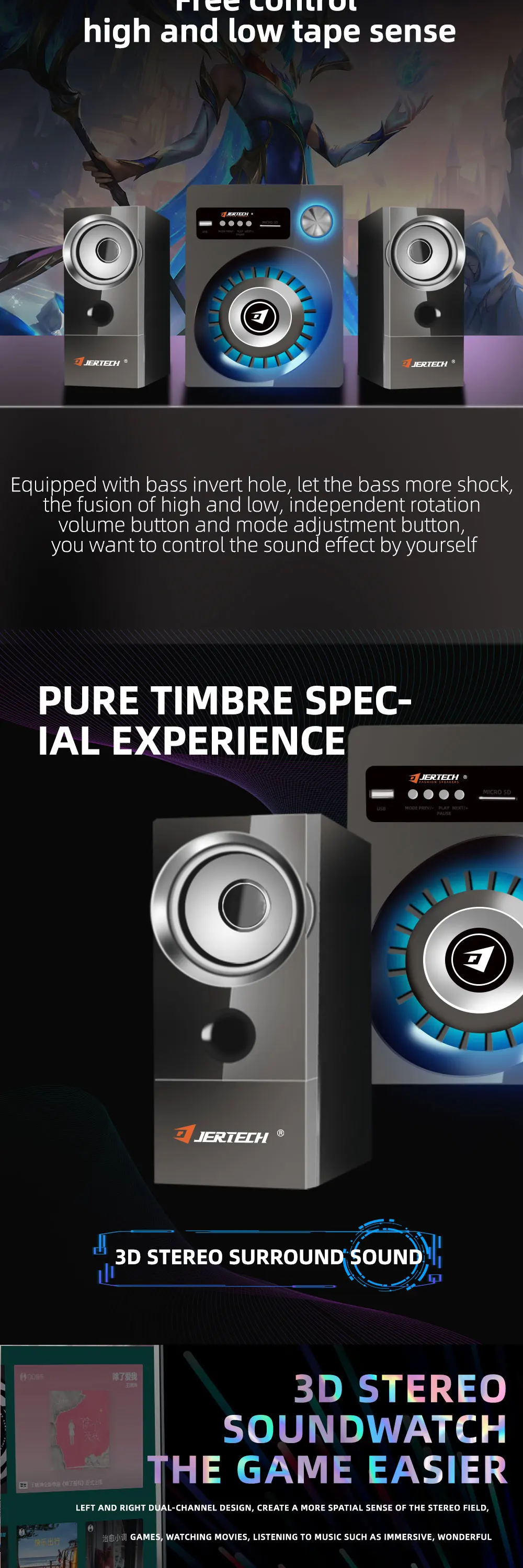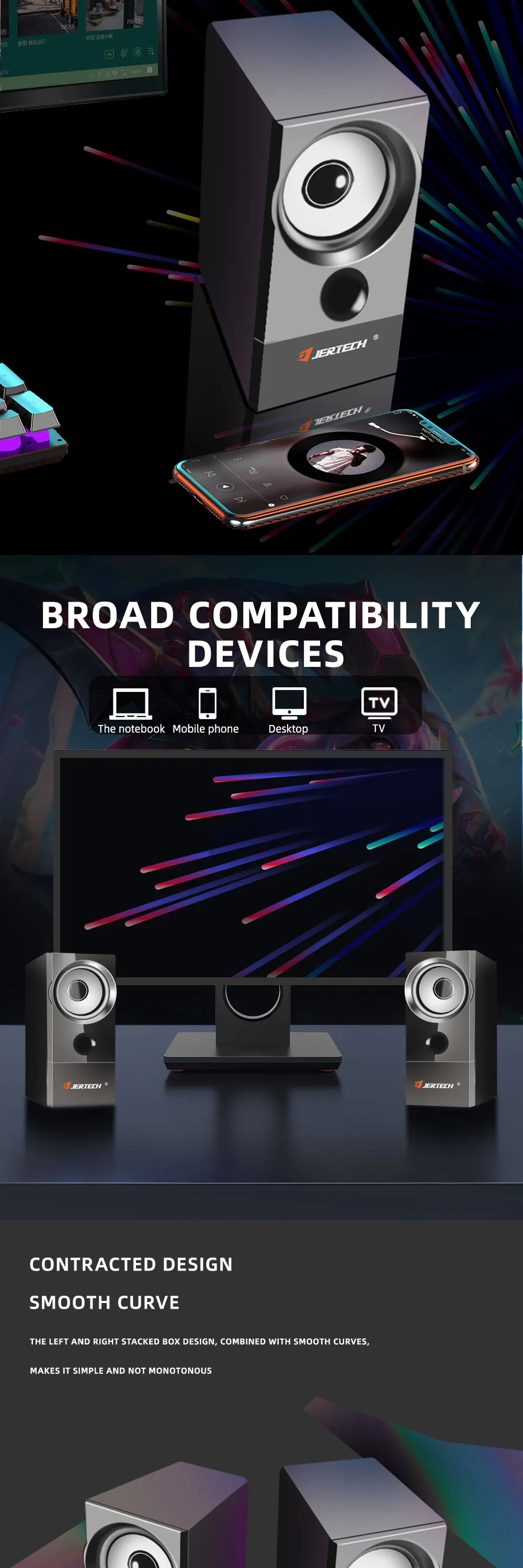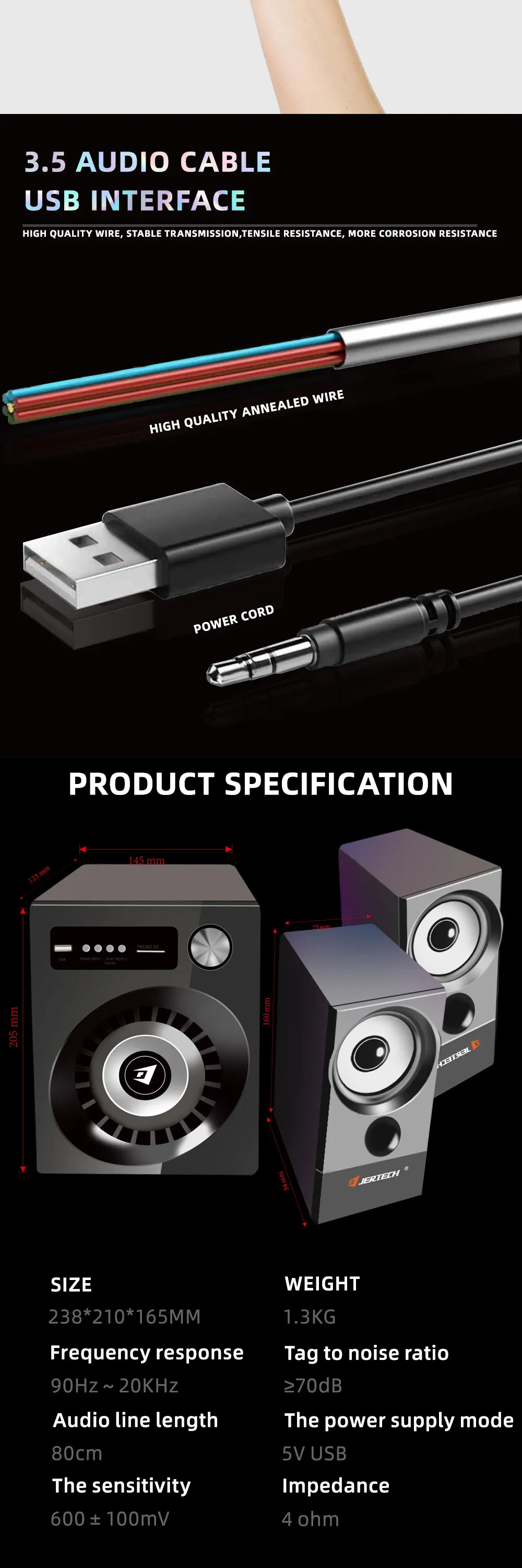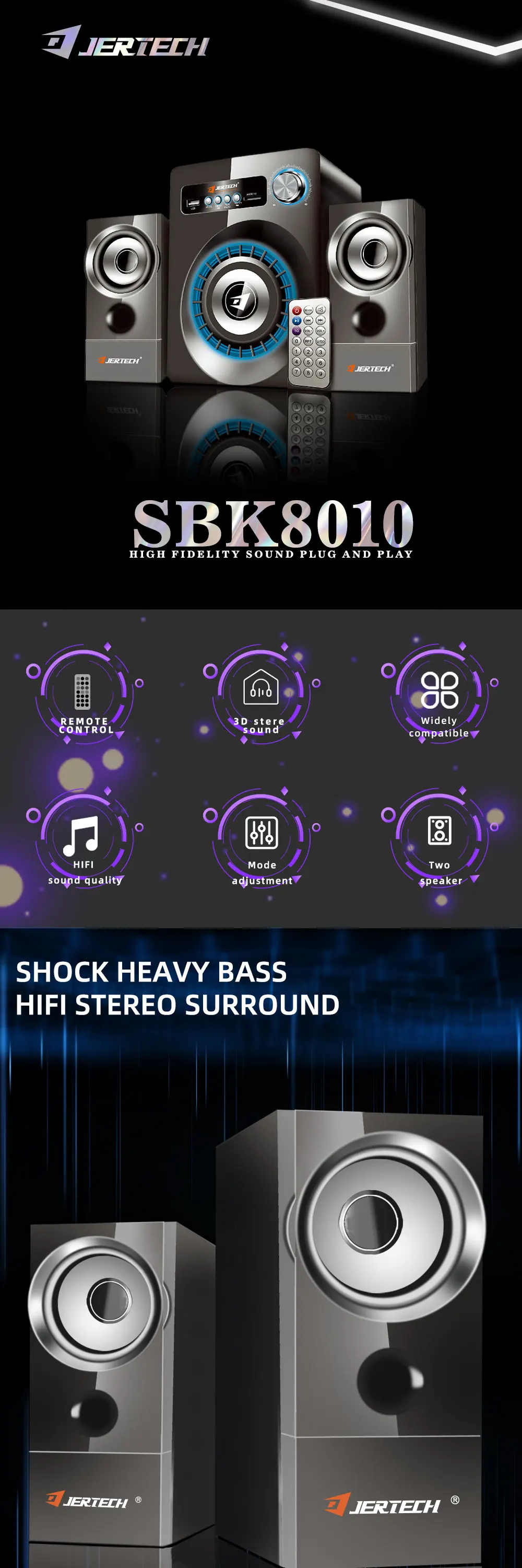 Descripción de productos Nombre del producto Juego de altavoces retroiluminados JERTECH SBK-8010 parámetro 100% prueba uno por uno estrictamente antes del envío Potencia efectiva: 3W