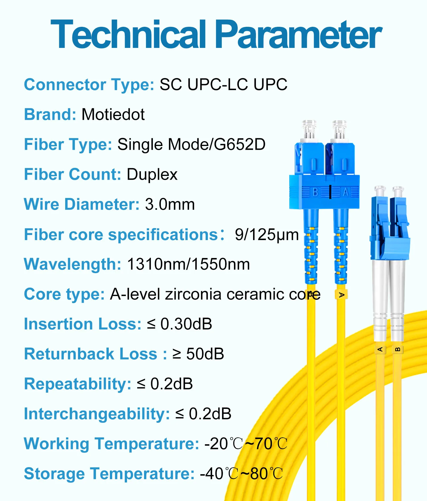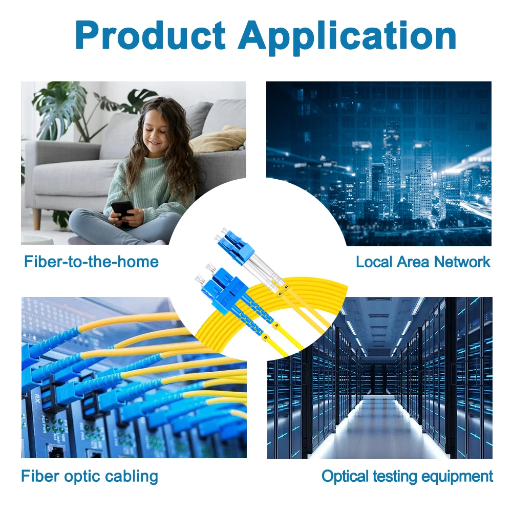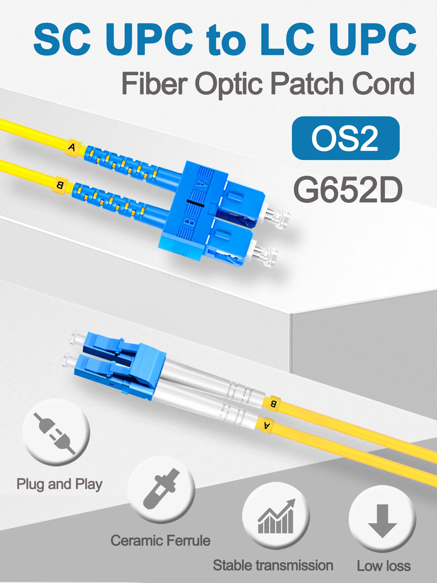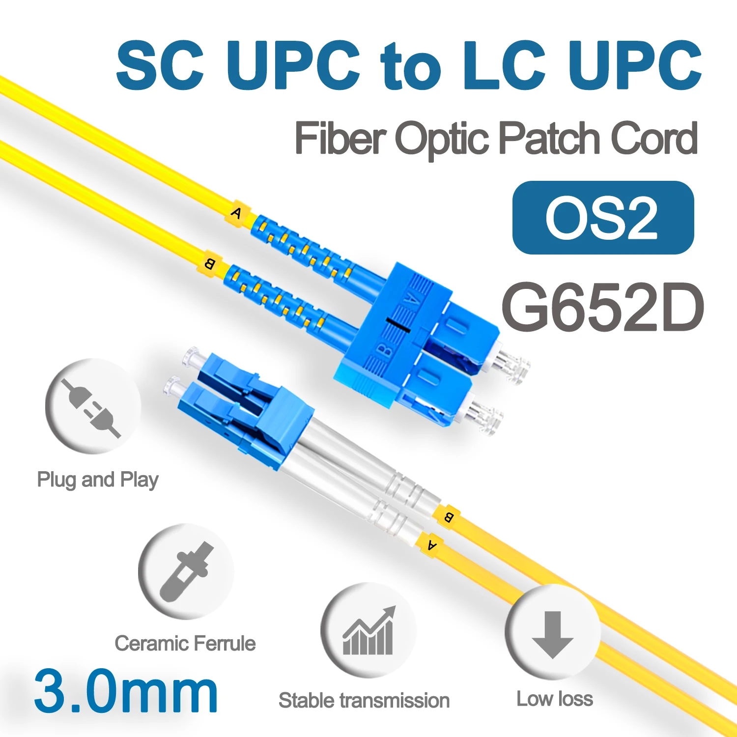 Comprar SC a LC UPC puente de parche de fibra óptica 3,0mm OS2 Cable monomodo dúplex 1m 3m 5m PVC G652D SM 1310/1550nm FTTH