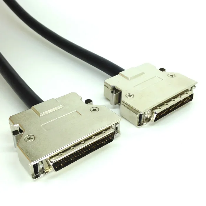 Comprar SCSI DB50 macho a Cable de extensión de datos, carcasa de hierro de 50 pines, tipo gancho, adaptador plateado, Cable negro de 1,5 M